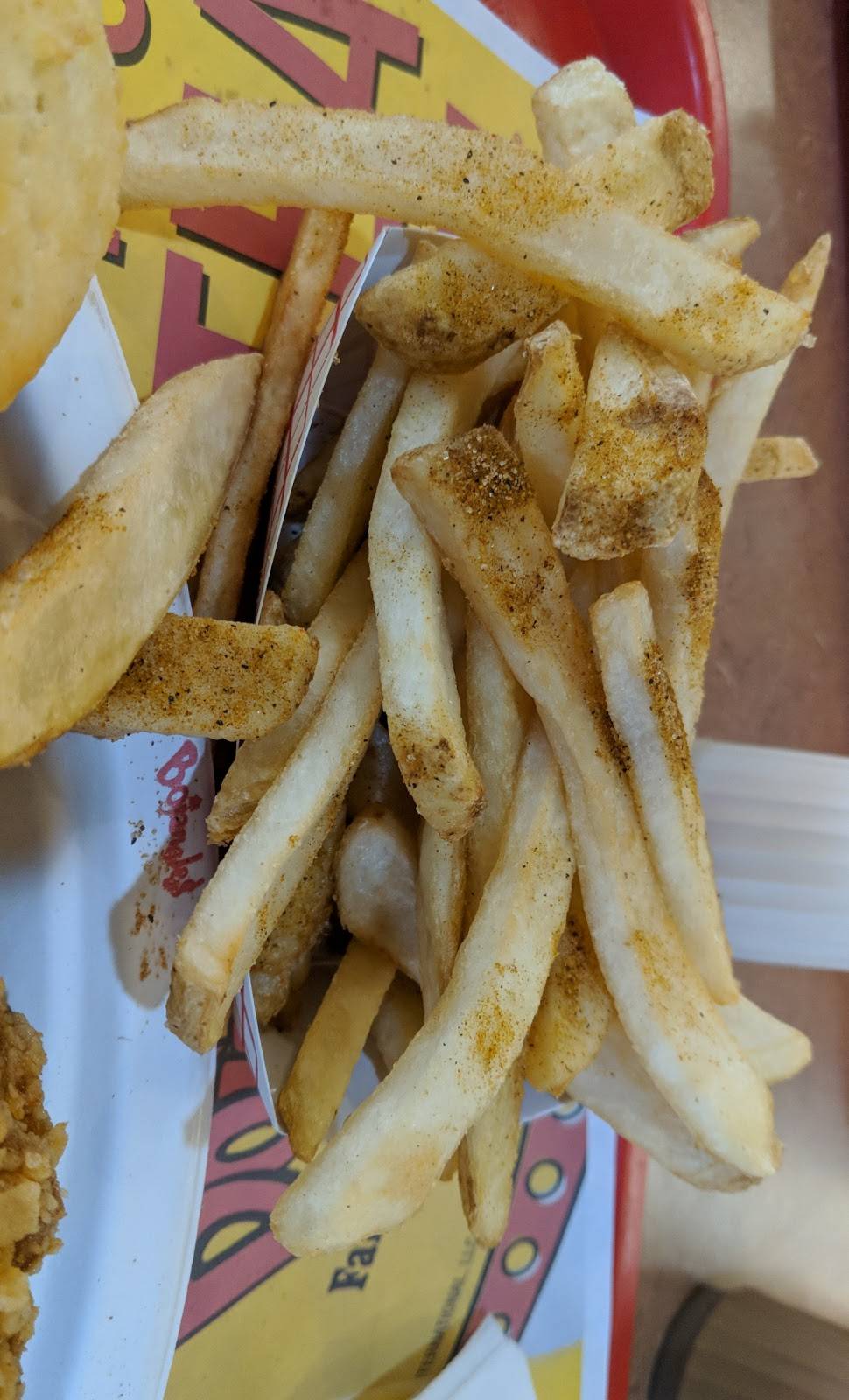 This is a fast food chain from North Carolina. Breading is thick and crisp. Chicken was excellent with just the right amount of spices. Sides were ok not bad but not the same level as the chicken. There was a KFC across the street with an empty lot compared to Bojangles' full lot.