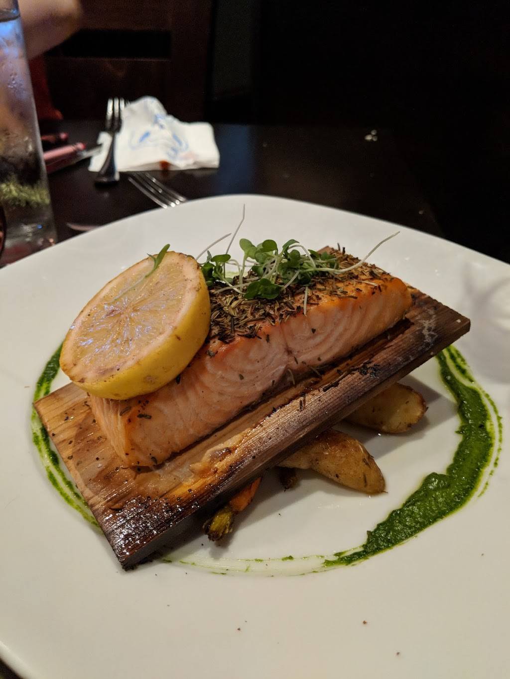 Food was very good and prices pretty reasonable. A nice atmosphere, lively. My only criticisms would be about the service. And not that it was unfriendly. Everyone was very friendly and professional. Just really should clear empty dishes off the table before you bring the next ones out. Pet peeve of mine to have to shuffle things around to make room for more food. Also, they forgot my appetizer, it came out after my entree, so I packed it to go home. Should have just skipped it at that point. Overall though, I would like to go back!