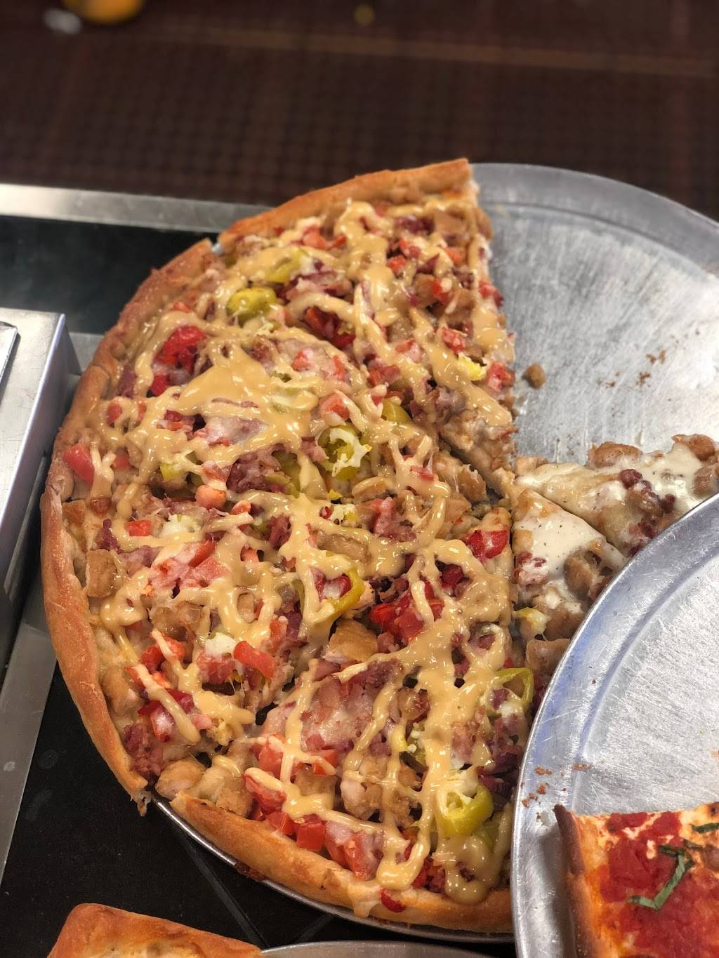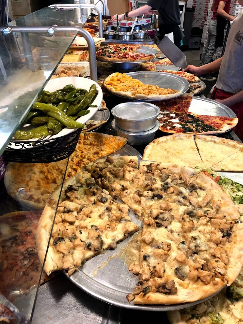 Great pizza of all types. Thin cheese with crispy crust to thick Scillian wedges. Pizza can have rigatoni, potatoes, cheese and bacon or peppers,onions and sausage. The selection is vast. Bottled and draft beer is available. The lunch rush from 12pm to 1pm can get a bit busy. The crowd is usually local contractors stopping in on a lunch break. Mon-Fri I recommend going after 1pm. Big screen TV avavailable in the main dinning room with a small bar. There is a smaller quiet back room with table service if you want. The pizza is a solid choice. Big giant slices. Really you can't go wrong with the pizza options.