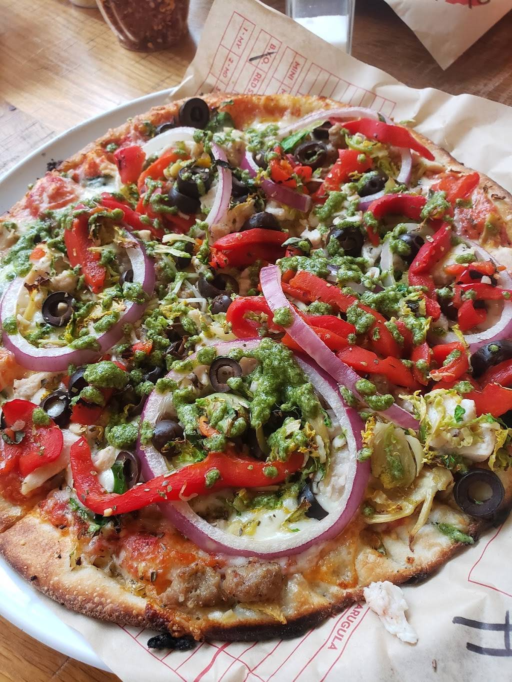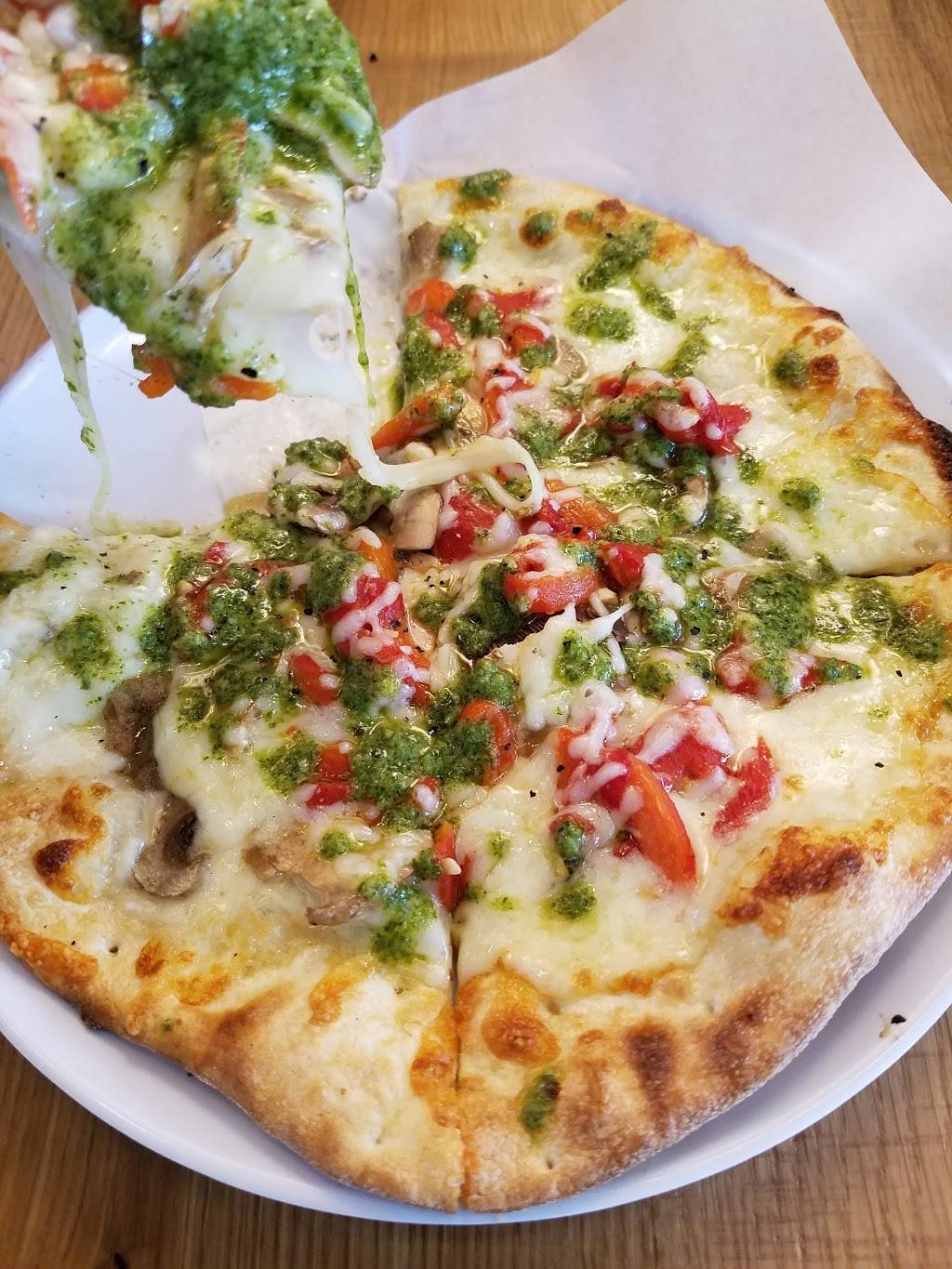 Great thin-crust pizza made with whatever toppings you like. Odd choice of drinks to accompany pizza (fancy juices and shakes?) and sometimes the staff can be a little inattentive at the register, but overall a solid family-friendly choice for great pizza.