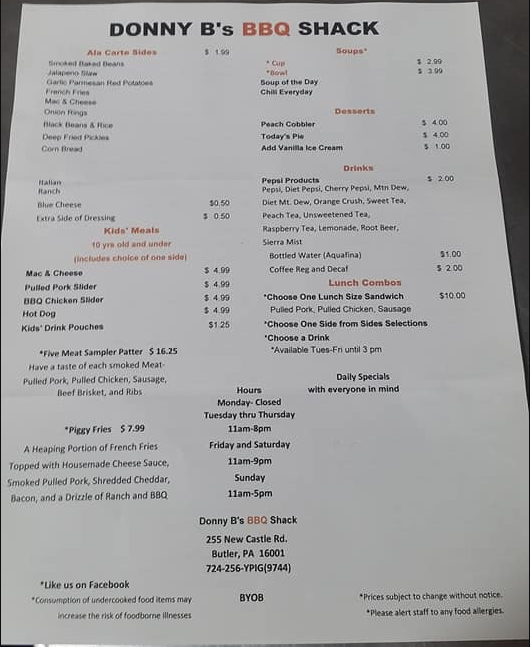 | Website: | https://www.facebook.com/DonnyBsBBQ/ |