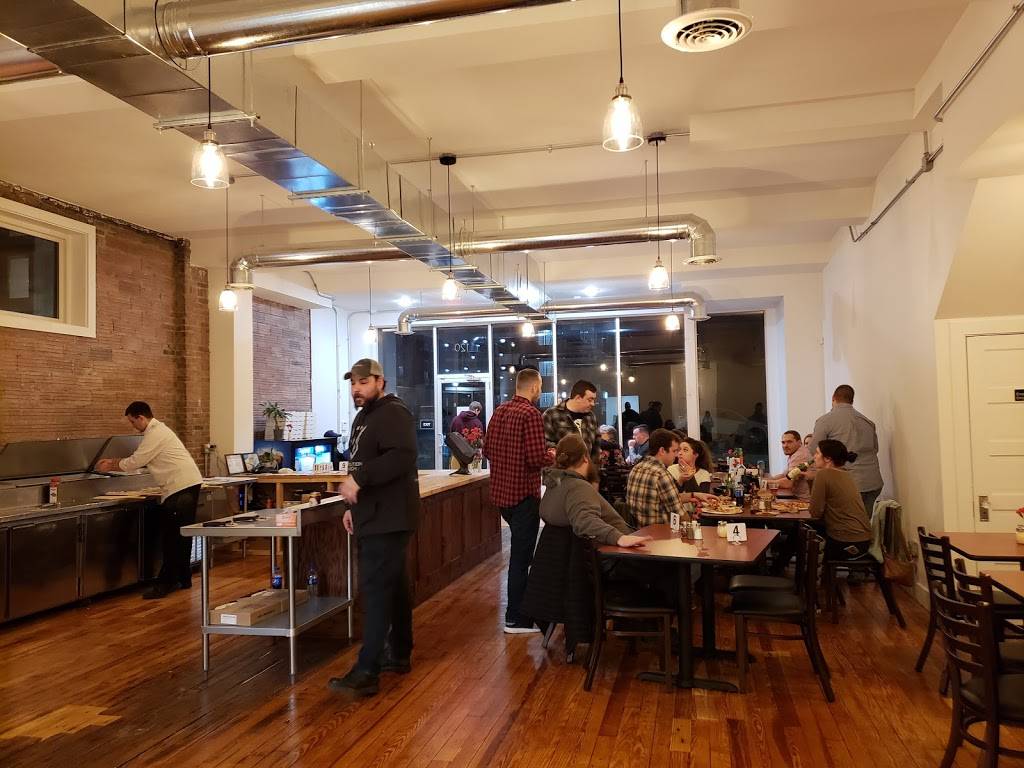 Love this restaurant - so excited it opened up in downtown Butler! Excellent food and atmosphere! The pizza is delicious with home made crust and sauce! I have a guest staying at the hotel across the street and he is addicted to the food there! You get a lot of slices of pizza with a small so get a to go box as the pizza is just as good cold as it is hot...enjoy!