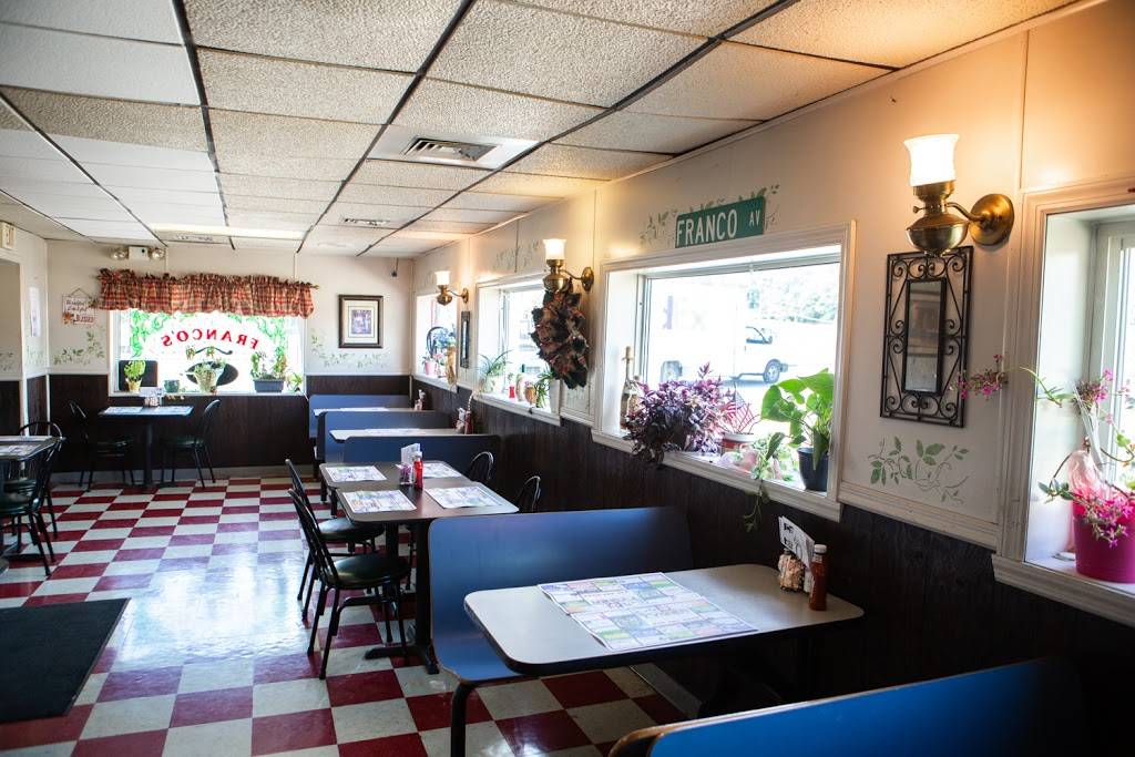 Ive been eating francos for years and i love their food. I always get their Stromboli and its so cheesy and yummy!! The waitress is always sweet. I gave 4 stars because i wish the place was cleaner and more updated. They definitely need a remodel