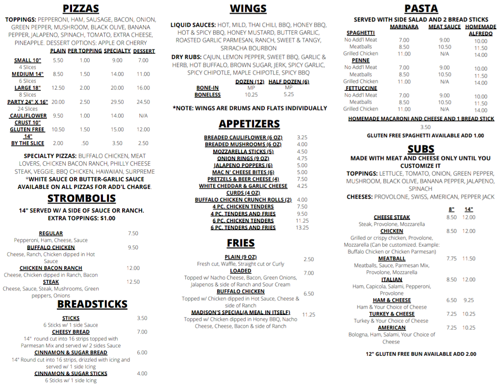 My family and I ordered a pizza from here for dinner for the first time and it actually wasn't bad but a large thick amount of cheese to where we all agreed it was to overwhelming, other than that the pepperoni was crisp just how my mom likes it, and the sauce has great flavor, just less cheese it would have been perfect we got an 18 inch for about 13$ and it's very large and seem to be good with toppings, we will return in the future! My dad also got an Italian hoagie as well it had tons of meat on it and fresh he said it was really good as well.