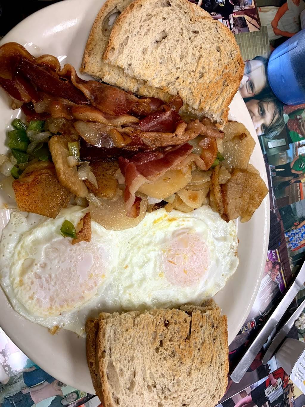 Food was delicious. Service was a little slow but was not bad for as busy as it was for a diner. My husband did say that they should rename the pancakes to Mama's Mammoth Pancakes ????