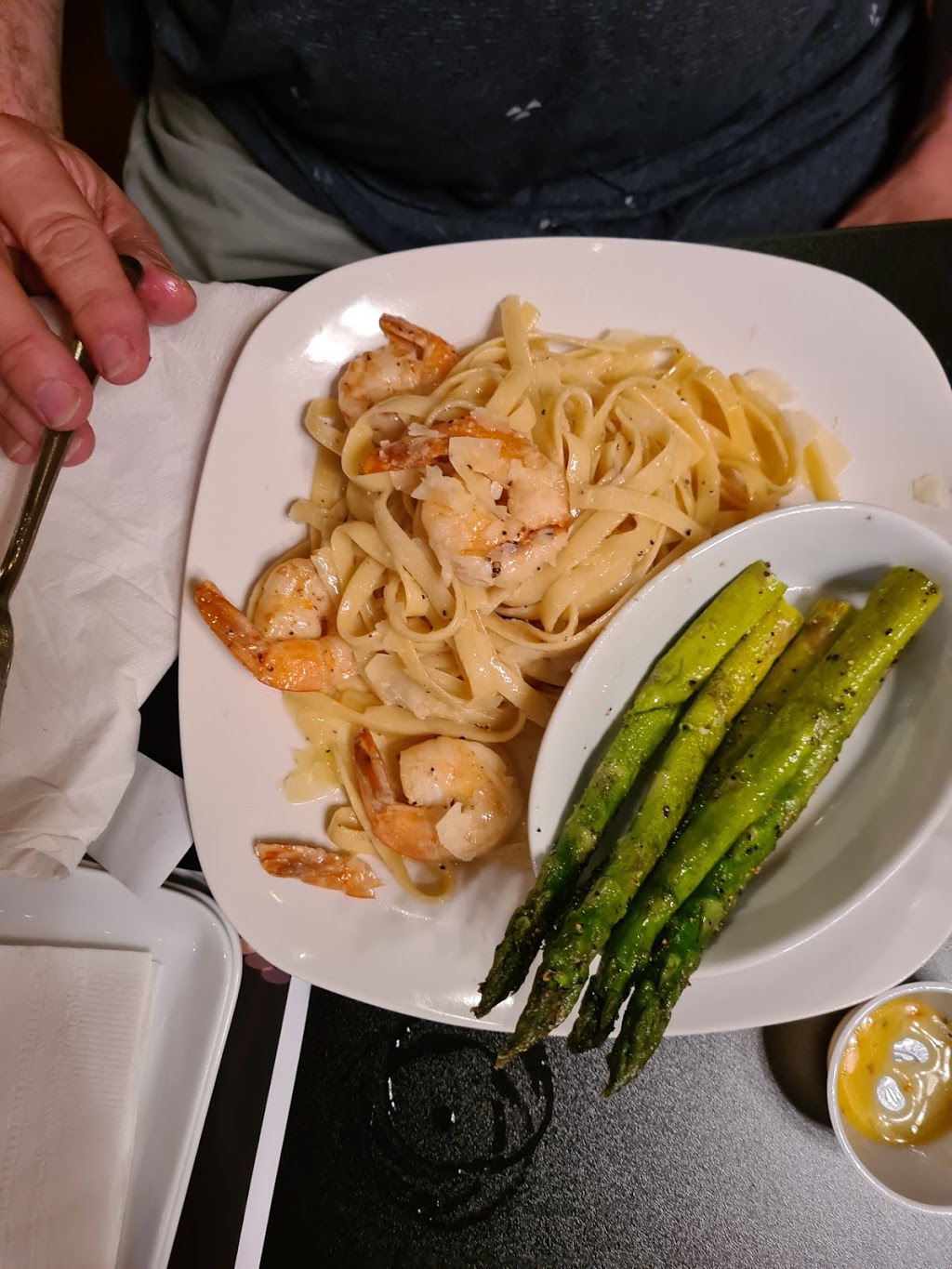 Stopped in Sunday evening as it was too hot to cook at home. Had poutine, shrimp scampi and penne Alfredo all of which was delicious. Serving sizes are sensible, service was fast and polite. Never felt rushed, never needed to hunt down a server. Prices are on the higher end for the area but on par with Joey B's which tends to always be crowded.