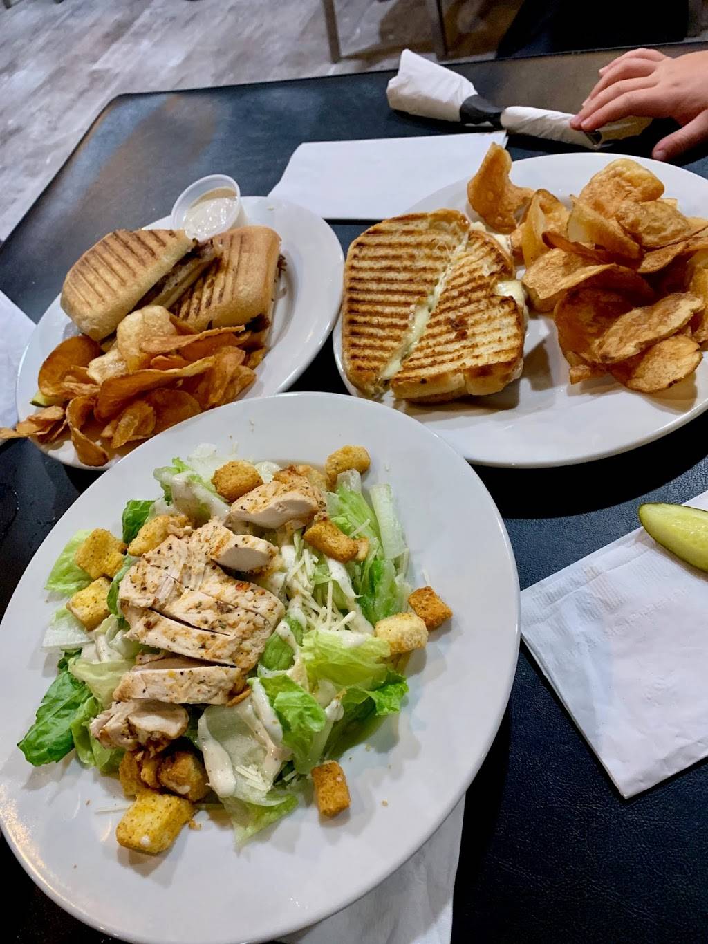Good food. Had fish and chips, others in group had pizza panini and roast beef. Only complaint was that beef wasn't hot.