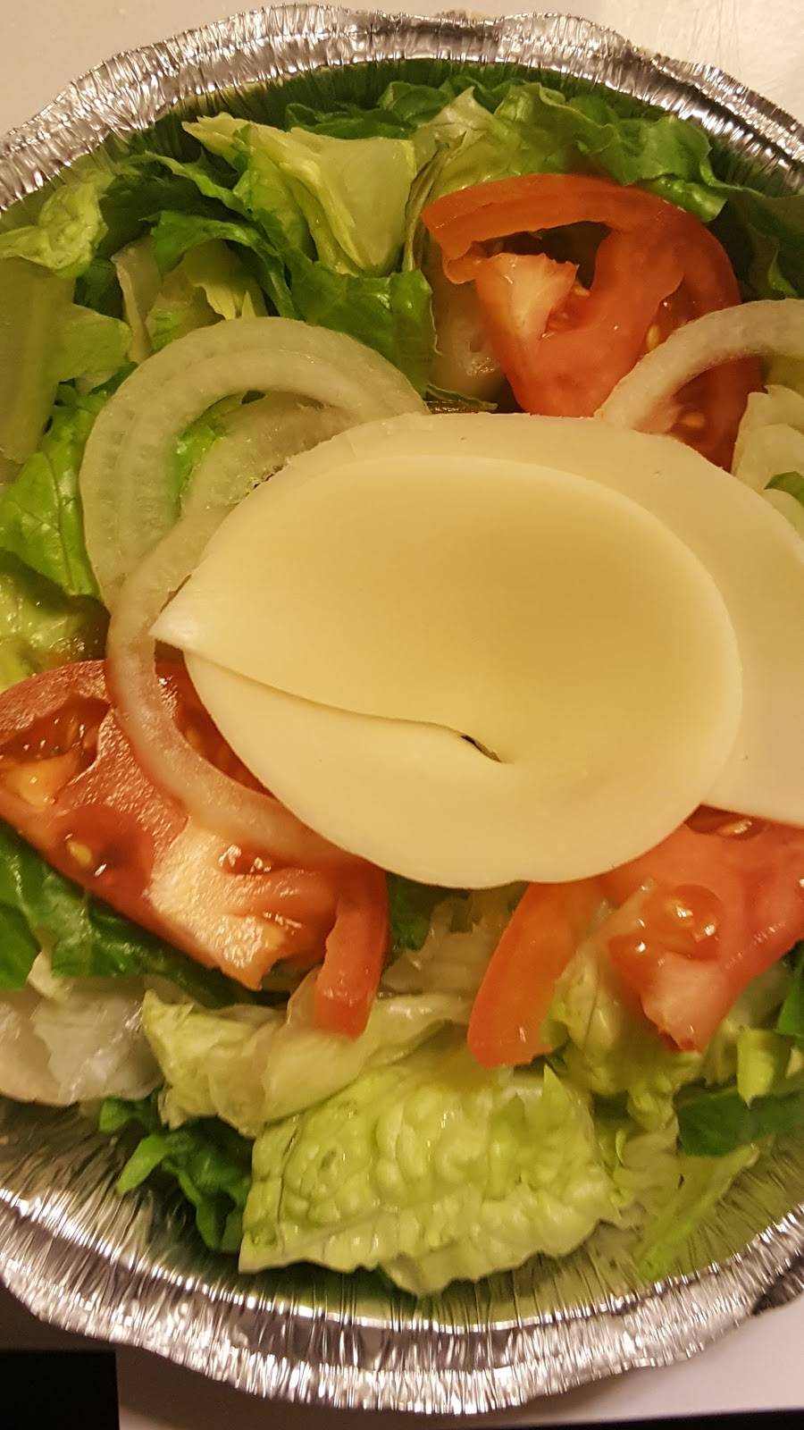 Place has such good pizza sauce. Their pizza was amazing. That salads are filled!! It was only $7