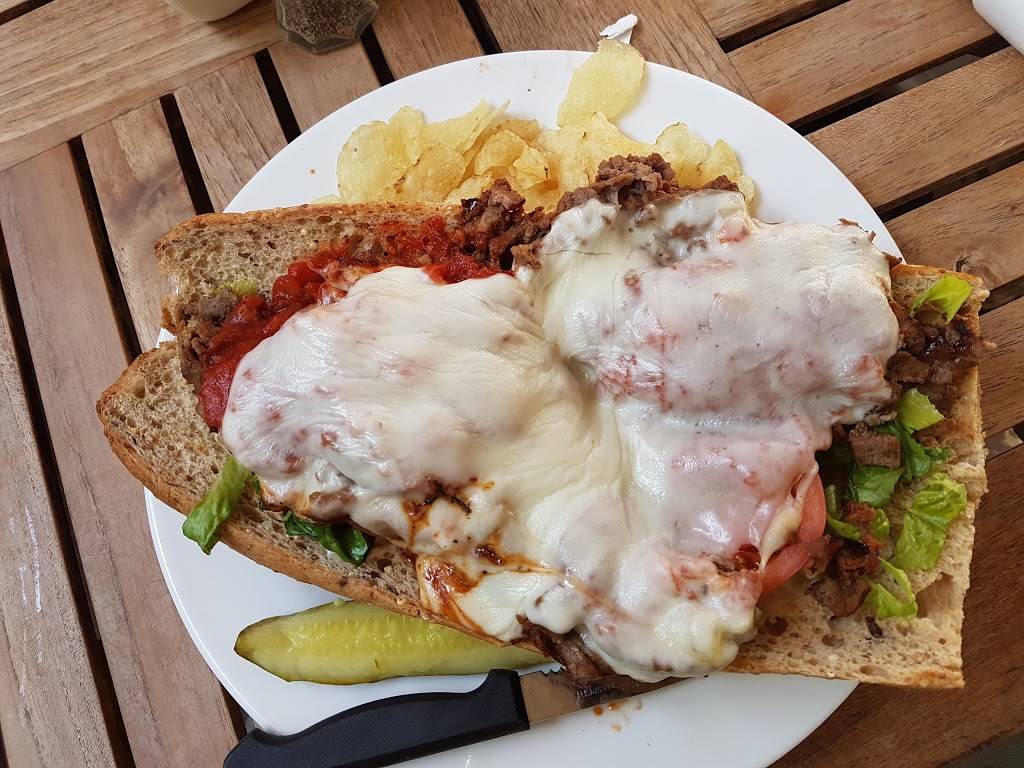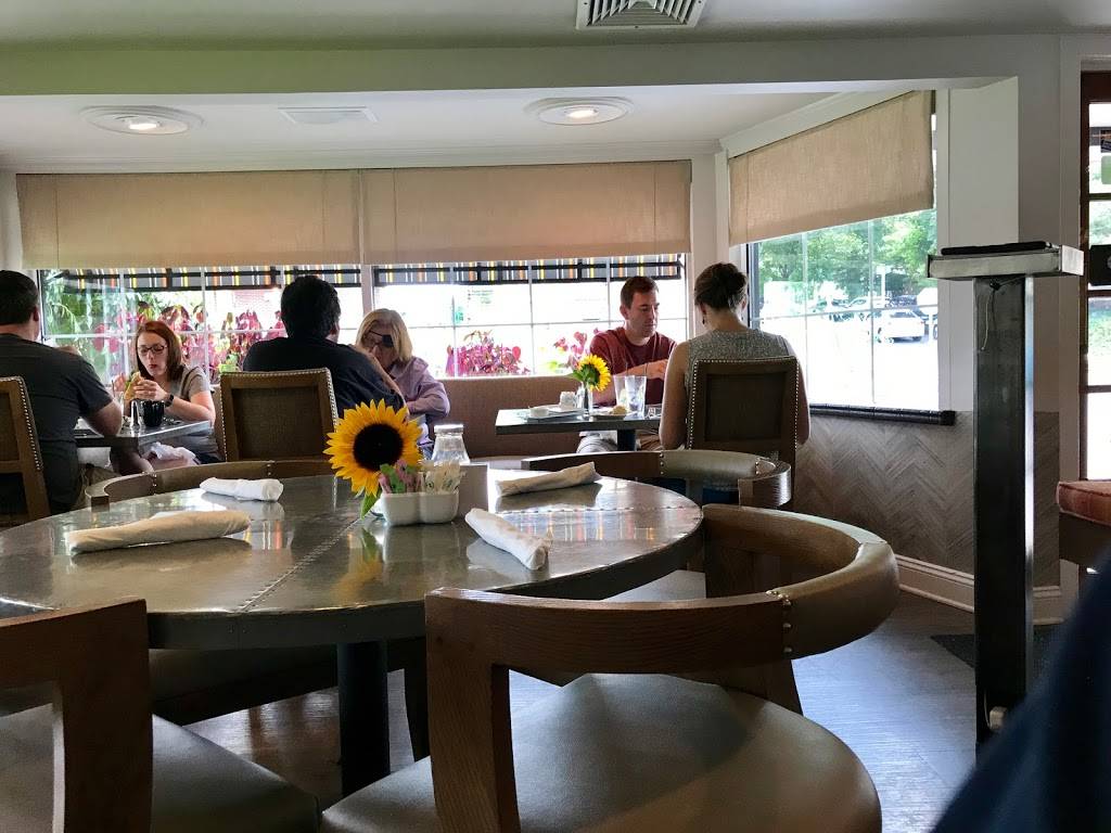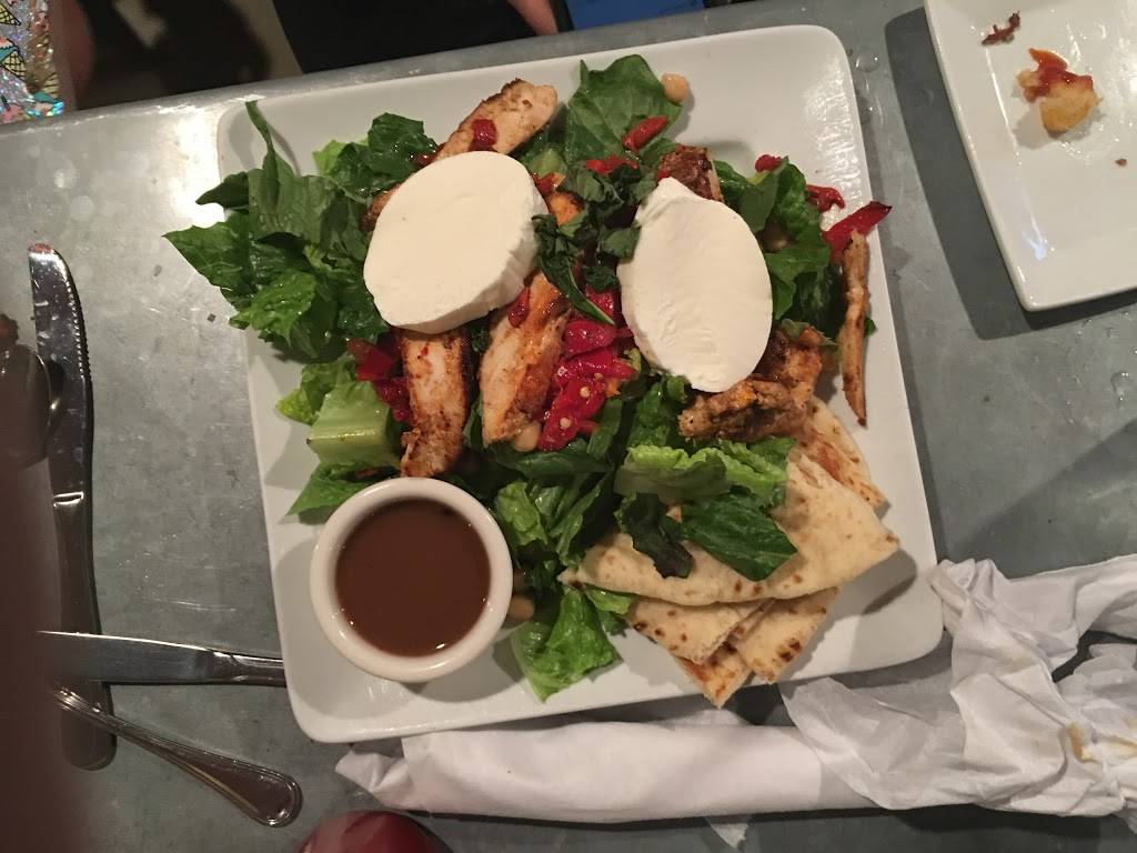 Easy place to stop and a nice menu selection. We split a chicken (coconut crusted) on salad. One iced coffee. One coffee. One cup soup. $29 plus tip. Seemed pricey. Atmosphere; pleasant. Staff; ok. It wasn't crowded mid afternoon.