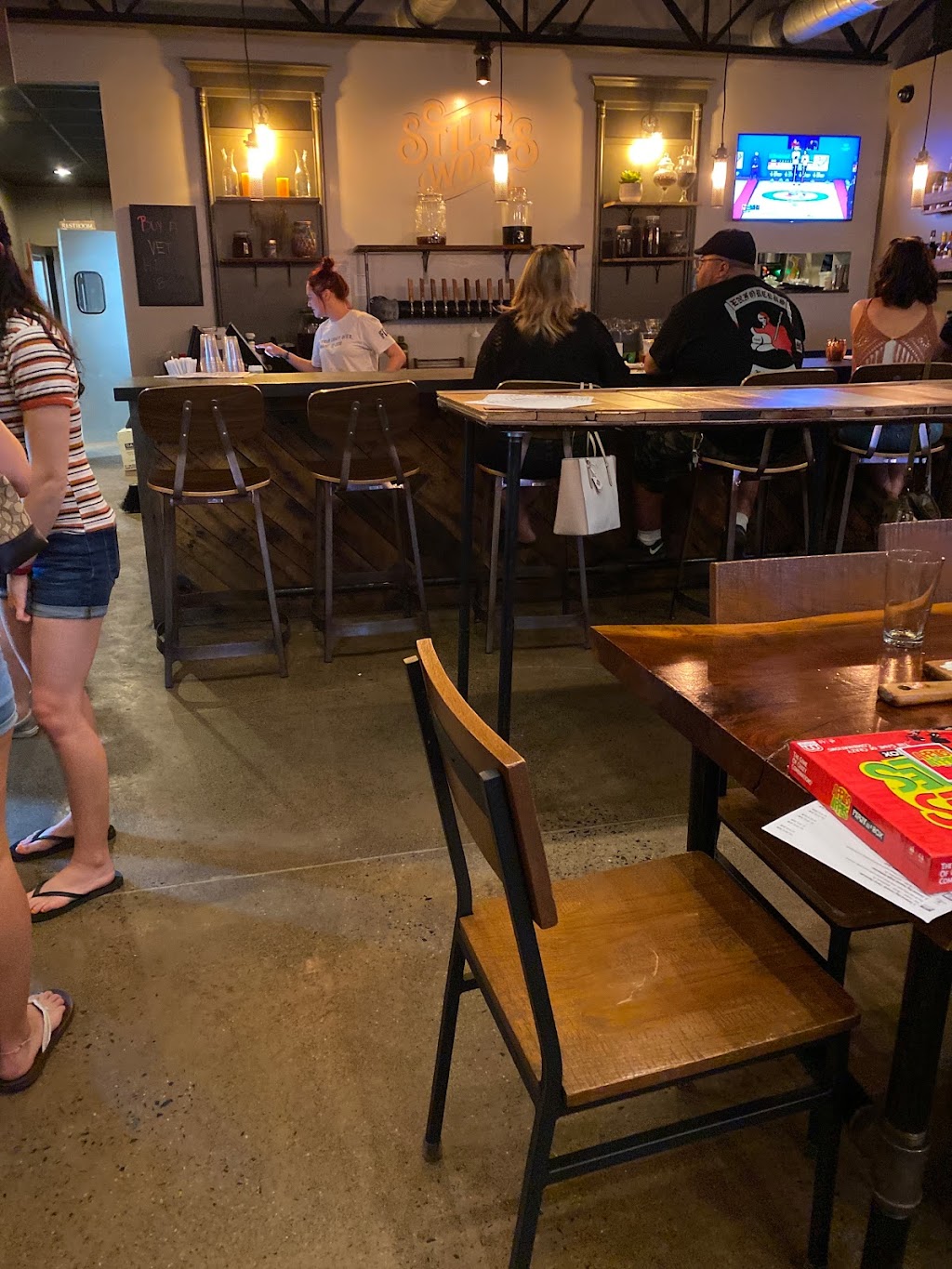 Nice staff and good food! If you're looking for spirits, this is your place. If you want Tattered Flag beer, be aware that they can't sell you any beer to-go. Don't travel here expecting to take home a couple of four-packs! Otherwise, it will exceed your expectations