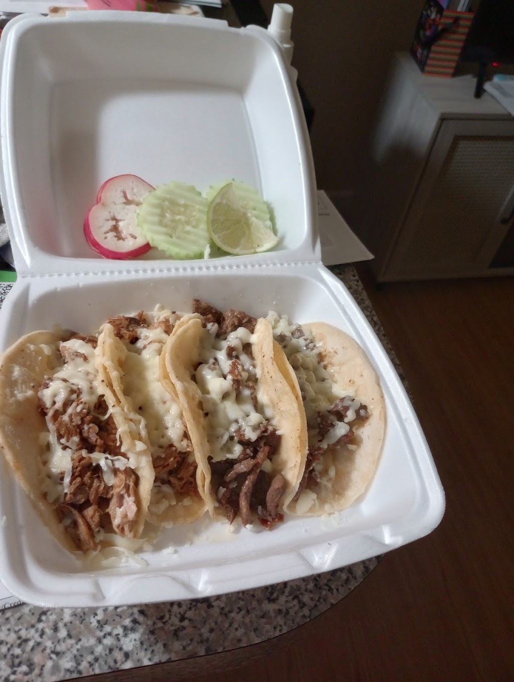 We ordered a chicken burrito and chicken quesadilla. The food was excellent and served fast! The salsa was great and so was the guacamole- and I don’t normally like guacamole.