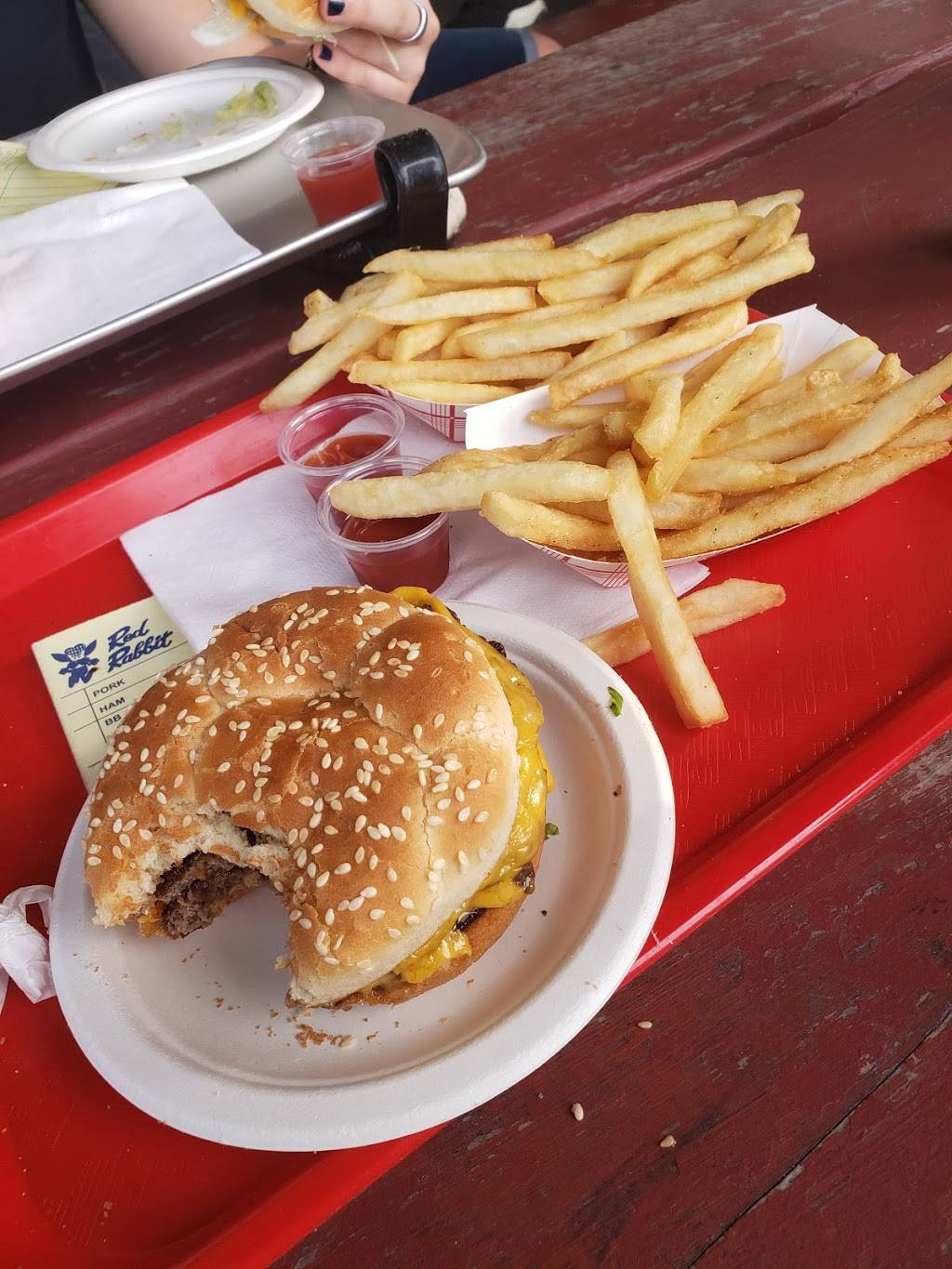 Bunny burgers with French fries with bunny dust. Had ham BBQ great all served 60's car hop style. Pull in and roll down the window.