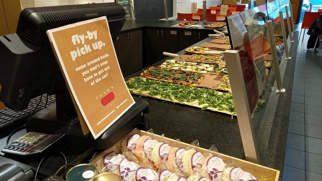 The best pizza around! Unique selection to eat in or take out. Grab a slice or a whole pie. Organic, vegan and gluten free options. Friendly and helpful staff. Love, love, love Jules!!