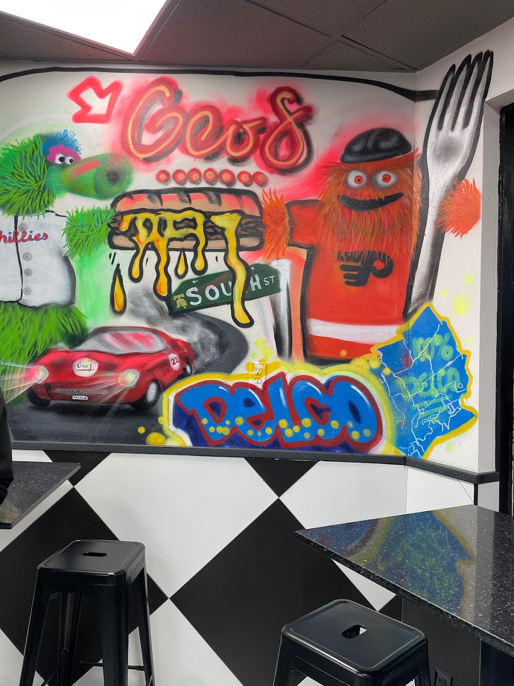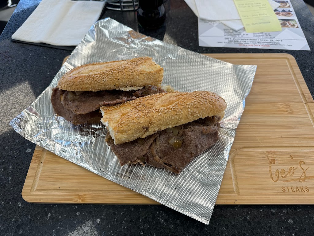 Got 2 go 2 Geos! Delco needed this gem. A true quality steak in the heart of Delco. It was hard to decide what to order because you can literally get your steak any way you want it. I had the seeded roll (soooo good) cooper sharp cheese wit onion and the prime rib steak meat… it was delicious! My friend’s steak was the Geo’s Steak she added tomato & pickle. Oh and it’s a vibe in there… the Philly art work is 👌 Well done Geos!