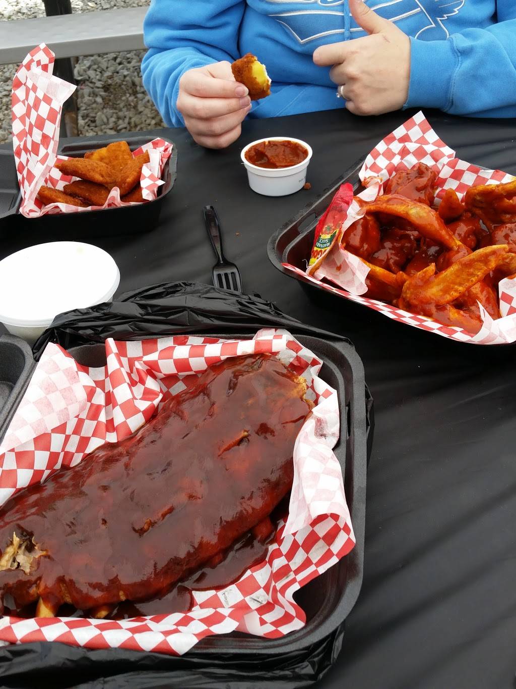 Very very good BBQ. When they say ribs are fall off the bone, it's no joke here. Tons of meat too. Every single thing we ordered was top notch. Racks of ribs, wings, pulled pork sandwich, brisket sandwiches... we had his house liquors sauce, again, cant be beat. Just enough zing the wife didnt complain. If you've never been here you'll be surprised such good food comes from this little trailer. There are picnic tables to eat at around the side if you're not getting food to-go. Last note is he's usually closed by 7pm unless you call.