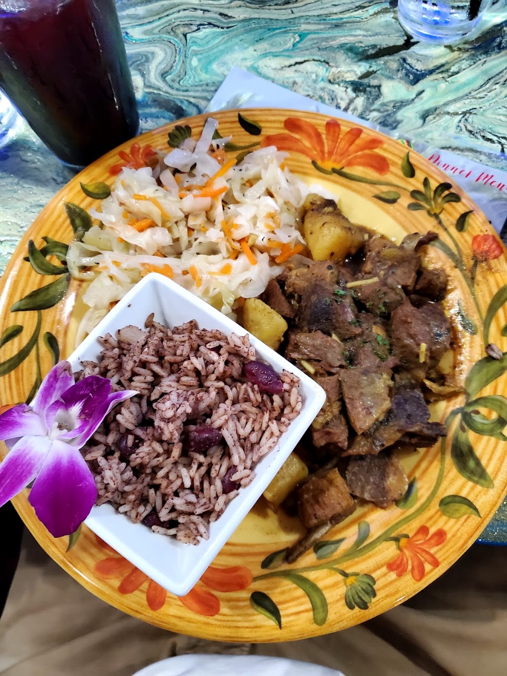 I came with my family (10 people total) for a celebration last Saturday. Drinks, appetizers, entrees, and dessert was definitely on point. We paid a little over $200 plus tip. For 10 people, the pricing was great. The wait staff was friendly and knowledgeable. The decor gave the feel of being in the Caribbean, on a ship or on the ocean. The jerk chicken was spicy and delicious and the oxtail was was cooked tender; so good. My favorite was definitely the curried goat and rice and peas, hands down! There wasn't a big variety of desserts but the one they had, pineapple butter bread was perfect for my sweet tooth!