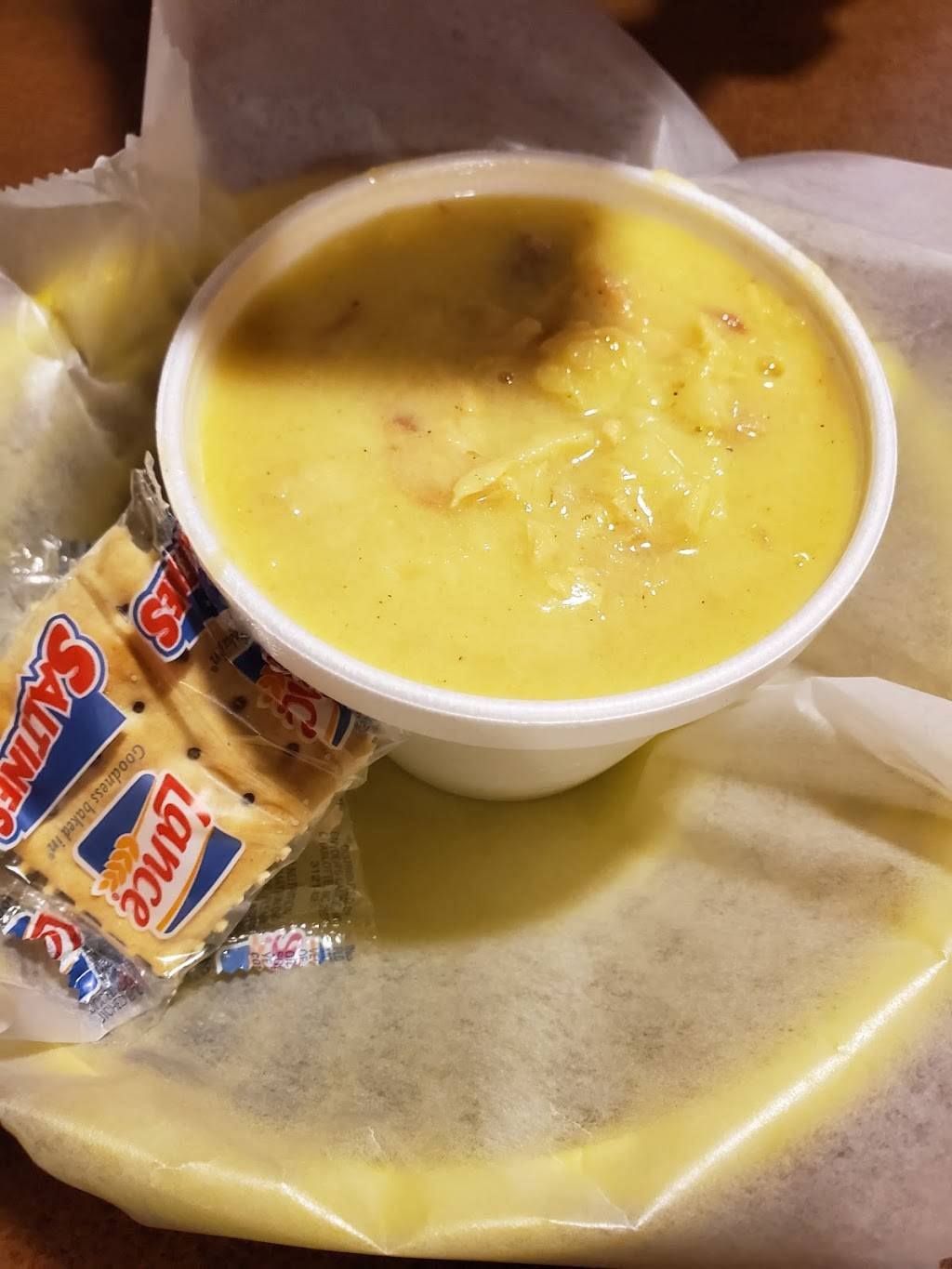 Stopped in for dinner today and everything was delicious! It was our first time there and we'll definitely be back. My husband had the crab cake sandwich with a bowl of lobster bisque soup and I had a turkey sub with fries. We loved everything! Prices are good and service was friendly. 5+ stars!!