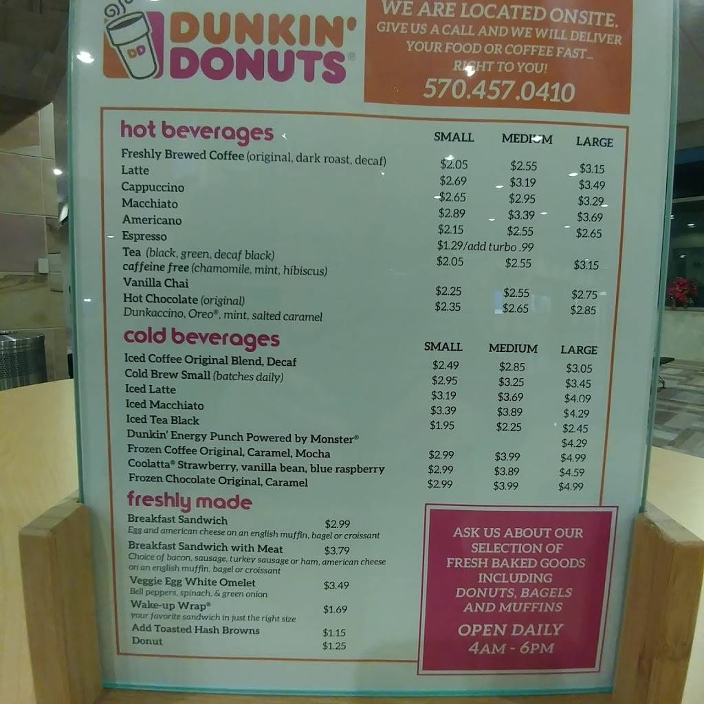 As expected for dunkin donuts... however tables were filthy for first thing in the morning, and it was $3.50 for a chocolate milk?!