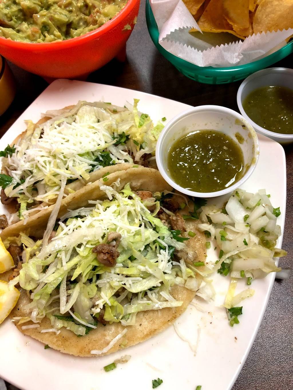 I’ll give it 3 stars because the food was ok tasting and the people were really nice. Unfortunately, it could have been much better. We ordered water to drink and were brought bottles, which we were charged for. No biggie, but a heads up would have been nice that they don’t offer any tap water. The service was odd. Tables that came in after us got their food before us. I saw other tables where half of the people had finished their meals when the other half were just getting there’s. The food is tasty but there is an over abundance of raw onion in everything. Even our $5 guacamole consisted mostly of raw onion chunks. The food was very salty. The homemade corn tortillas were delicious. The bathroom floor was sticky. If you choose to give it a try and don’t love onion ask for any onion to be served on the side. Unless you really like onions, pass on the guacamole.