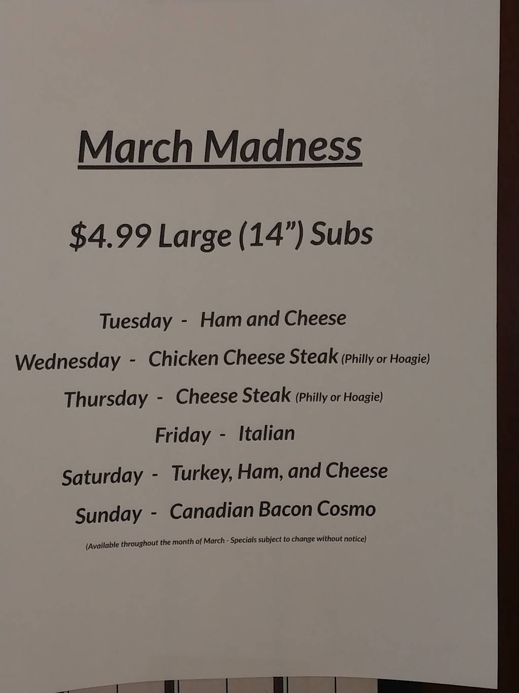 Food is ok. Staff is at best unfriendly every time I go in there. If it wasn't for the fact that my husband loves their pizza I would never return.
