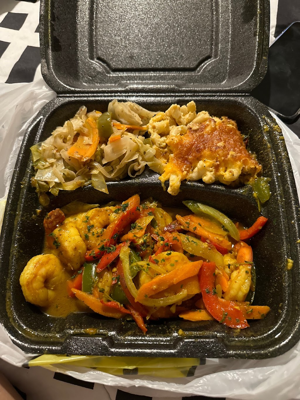 I was looking for my seafood spot and noticed it was replaced with this one, decided to try them out anyways .. very welcoming people, and the store is clean.. I got curry shrimp, Mac and cabbage. Everything was bomb, full of flavor 😙🤌🏽 no food left behind .. I’d say my only gripe was expecting a heavier platter 😅 can’t wait to see how much better they get, I gave them four stars since they’re new, the store is still bare so they still have room for atmosphere improvement.