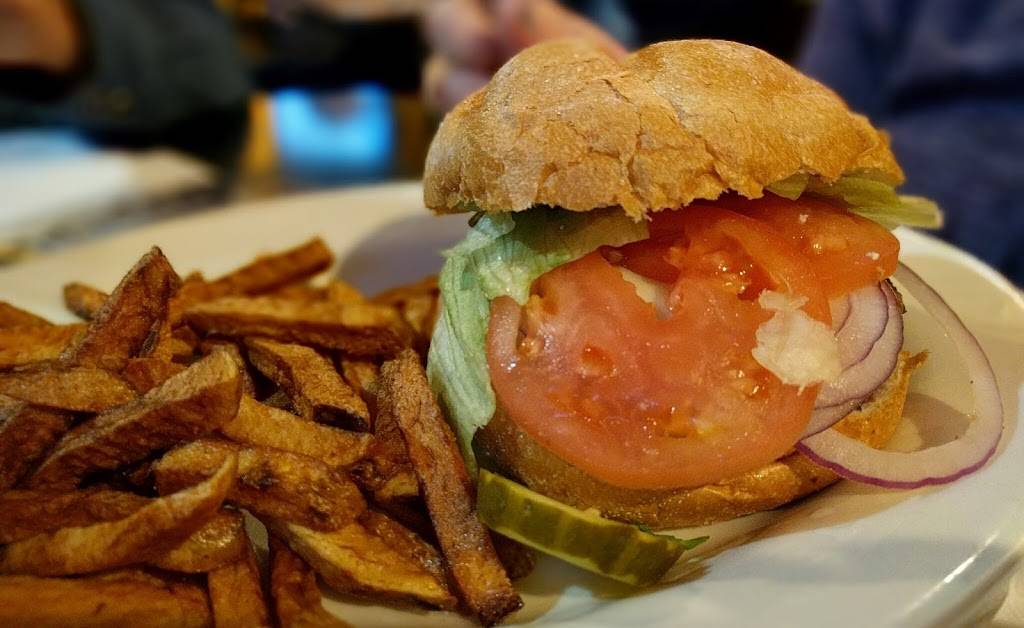I was in the area for an appointment, and wanted to eat before going to work. I felt like having an Impossible burger, but what were the odds that I'd find one in the area? A quick Google search came up with RR Street.The entrance is in the bar, which smelled like cigarette smoke, even though it isn't allowed where food is served. Odd. The dining area was fine, bit since they just opened for the day, it was still cold inside. The service was fast, and couldn't have been more friendly. The burger was cooked to perfection. If you haven't tried one yet, treat yourself. It ain't no veggie burger! The homemade chips were divine! The bathroom was spotless and smelled clean. Can't wait to go back on a nice day, sit outdoors, and enjoy one of their other meat-free items.