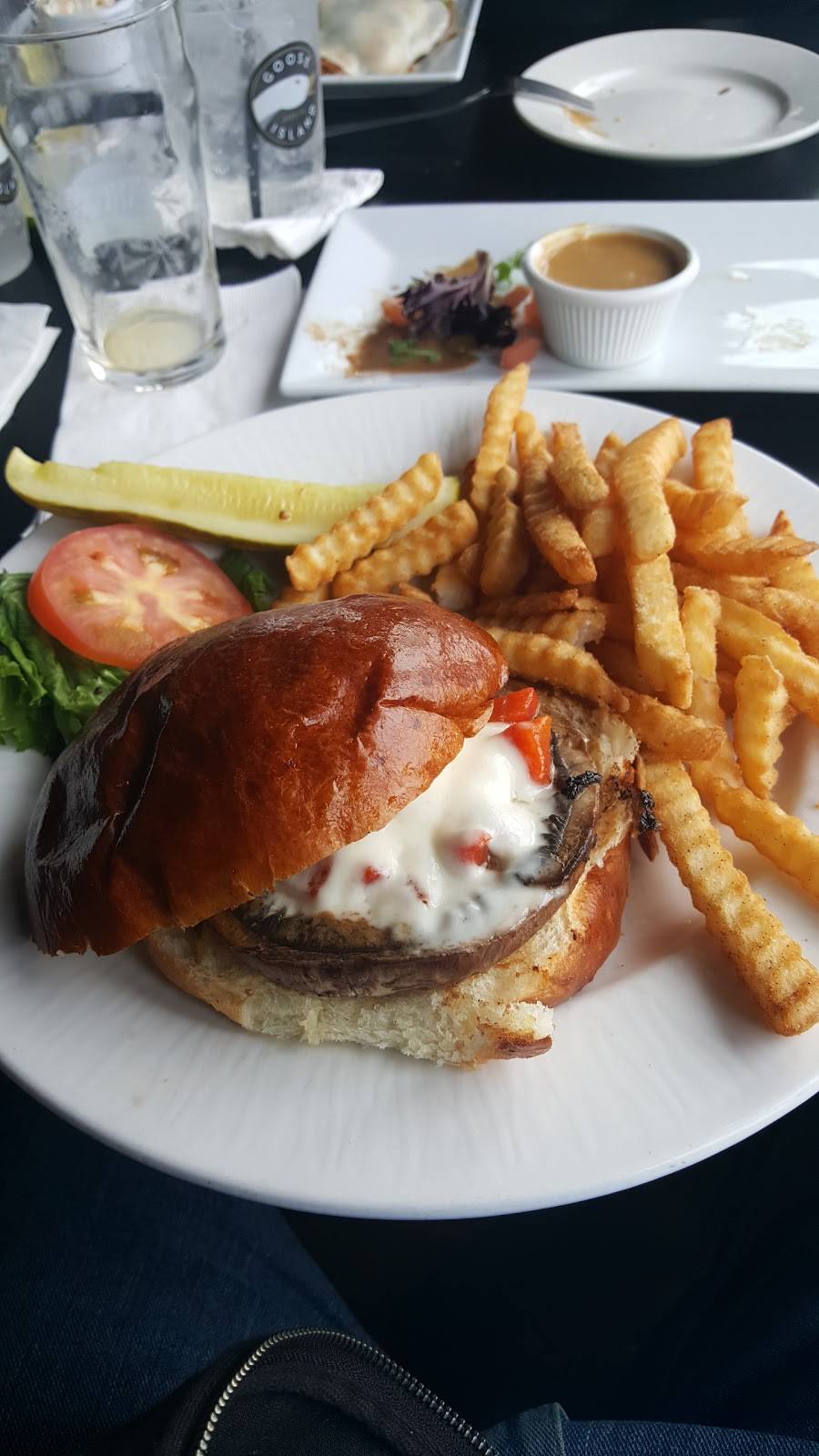 Very nice atmosphere,big windows,nice music,pleasant waitress,fresh meat patty on a burger made to order,fresh salad ingredients.
