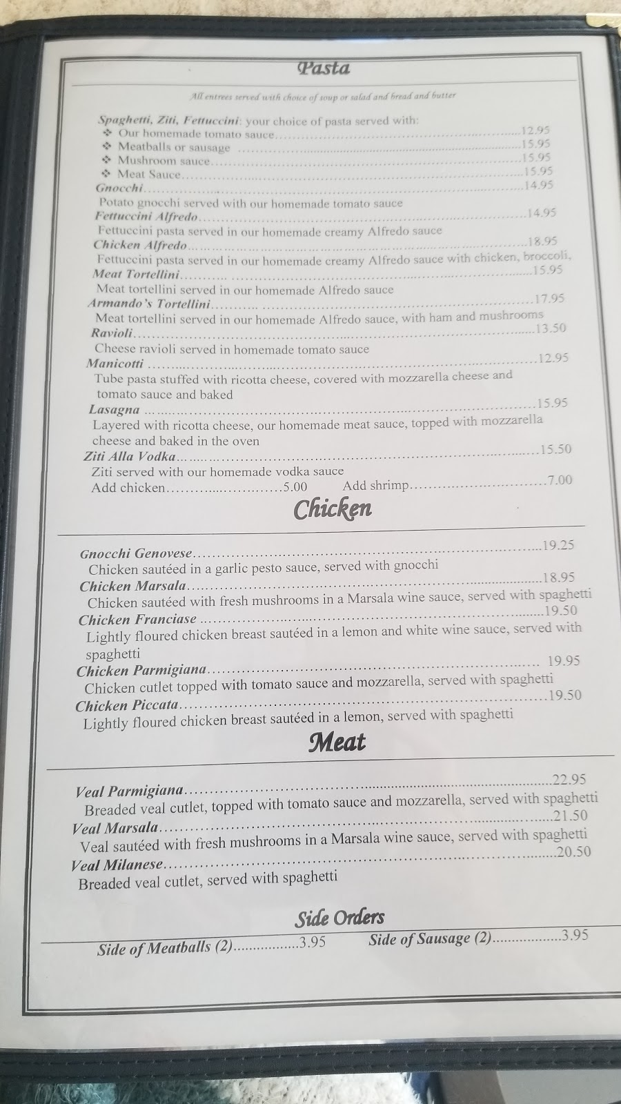 Menu is typical Italian (no pizza)