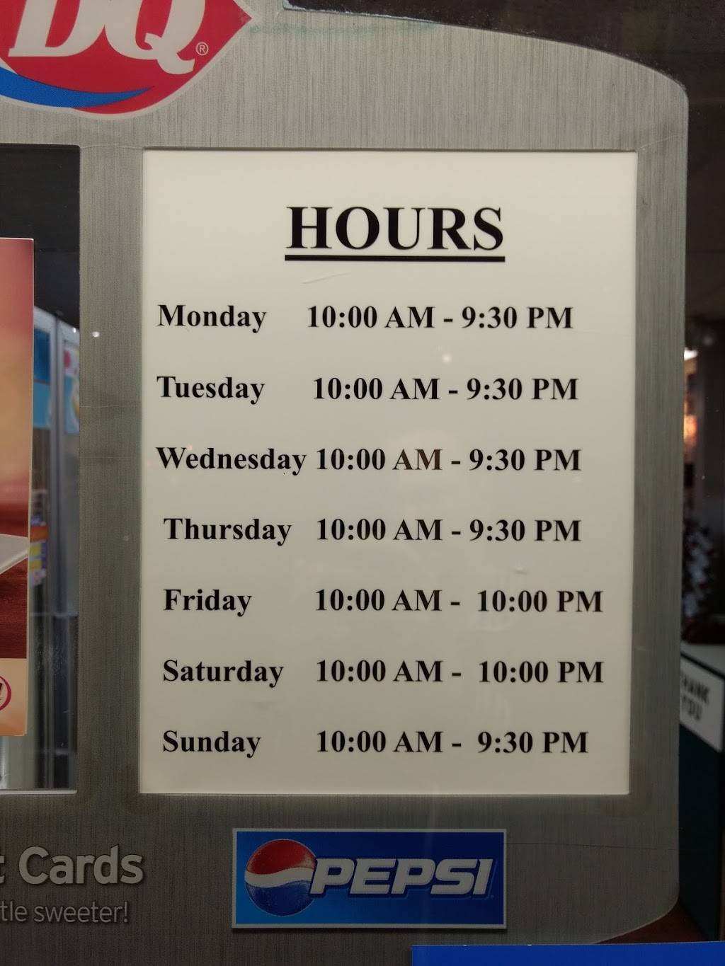 | Sunday: | 10:00 AM – 9:30 PM |