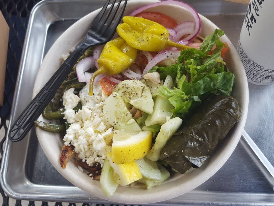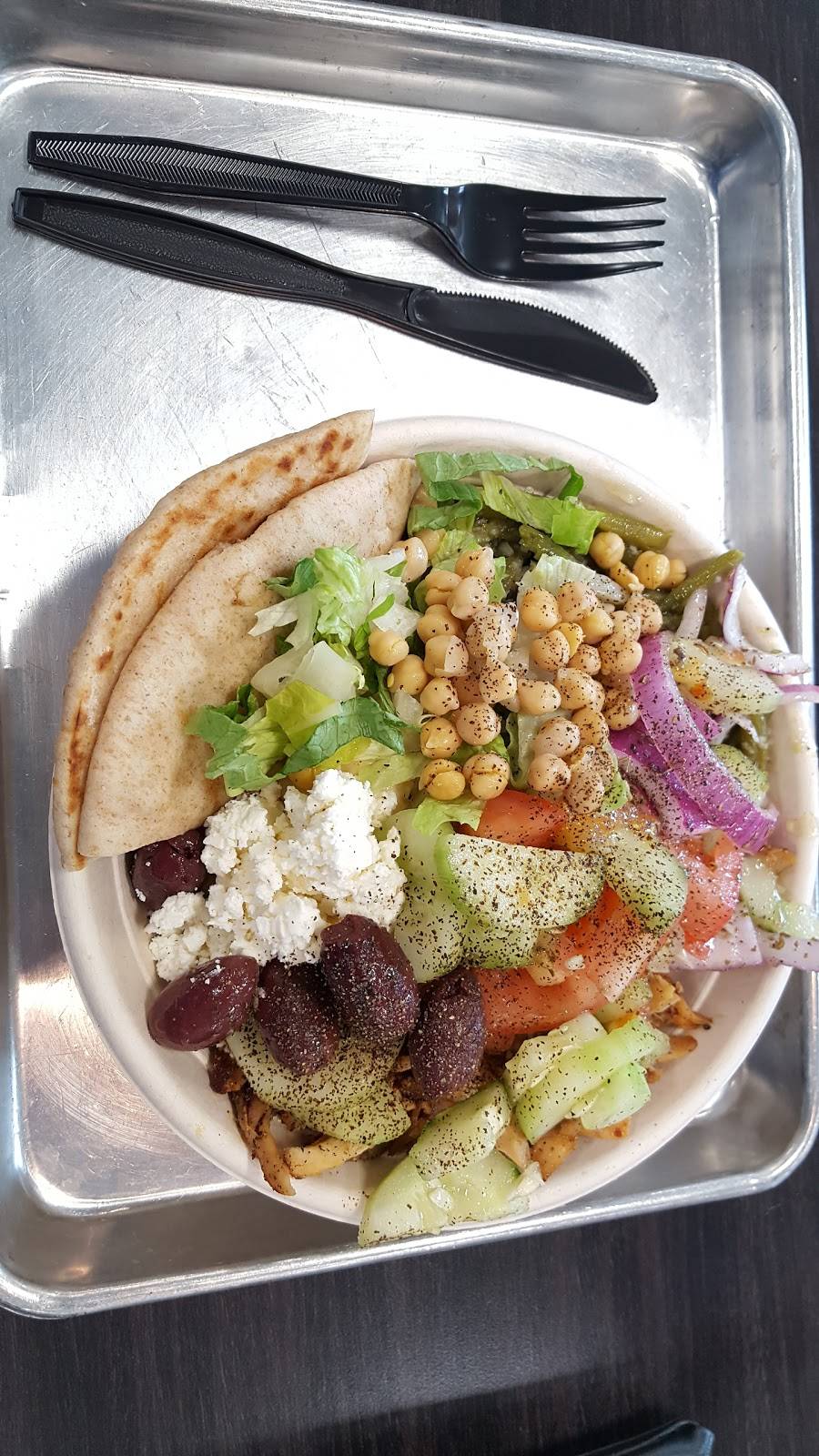 Delicious! Very similar set up to salad works. You work your way through a line with servers adding different items to your bowl or pita. Lots of choices! There are lunch specials that are great. Take out or large and clean seating area to dine in.