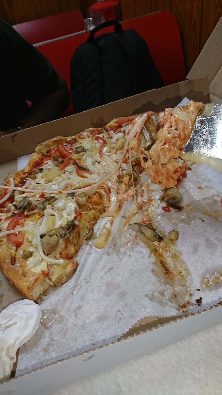 Friendly staff, good service and greasy pizza. I understand I ordered a few meat toppings but the grease was just laying on top of the pizza.