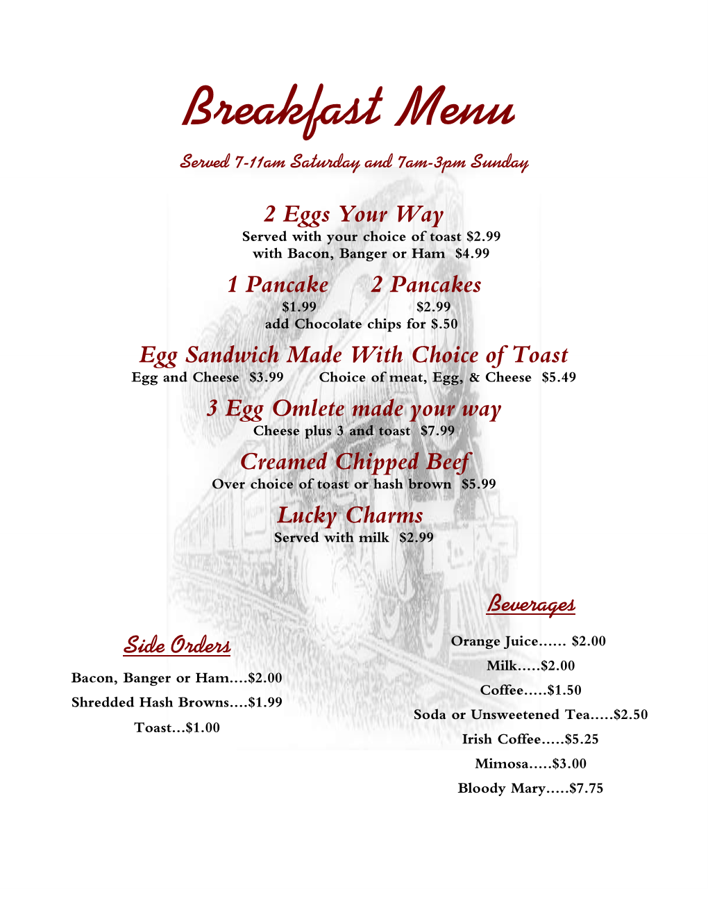 | Sunday: | 7:00 AM – 3:00 PM |