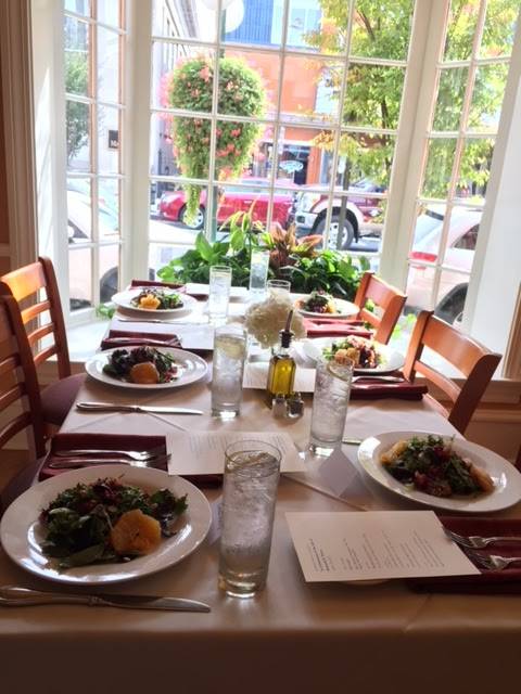 Wow what a excellent dinner. After being referred numerous times, we finally got a chance to eat at this charming bistro. First we were shown in to a beautiful decorated dining room with big bay windows looking out on the main street. This reminded my husband and I of dining in quaint towns in Europe. The wine list we received was elaborate without being overwhelm. A very nice selection that seemed to pair well with Elizabeth's dinner menu. We shared a wonderful Caesar salad, a nice balance of Parmesan and lemon. My husband choose the tenderloin and I the evening special of local lamb chops, which were both cooked perfectly and delicious. The bread, which I believe is made on premise was wonderful. We were thankful they offered it several times. The thick pizza like flat bread and wheat bread had an artisan harder crust and a dense, chewy inside. The malbec wine was a bit fruity with a nice hint of tar and oak and reasonably priced. The creme brulee was the best we have had in a very long time, creamy but not pudding like, with a dark caramel sugar crust and fresh berries. The coffee was a little strong for me, but perfect for my husband's taste. We just wish we lived closer and had more free time to eat here more often. As we left the dining room filled up and I think reservation are a good idea.