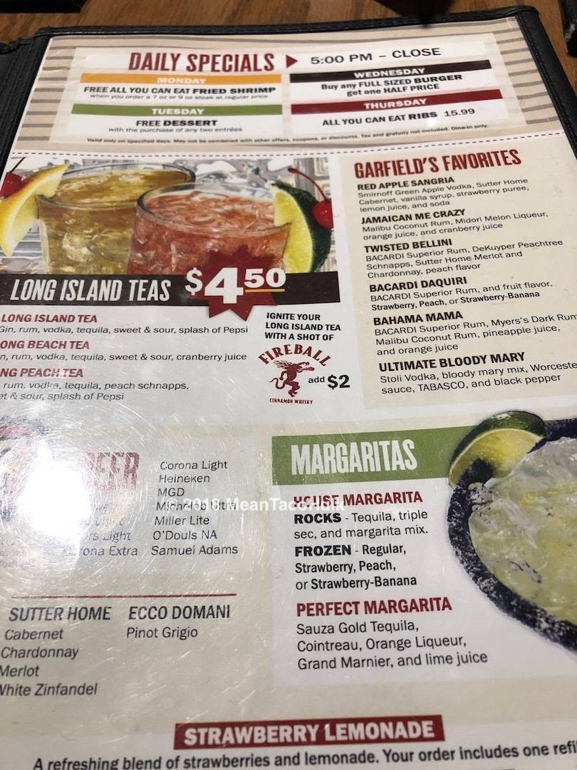 If service would have been a little faster would have gotten 5 stars. It still was decent service though. We sat at bar bartender very friendly stayed busy but she should had help. I love Garfield’s menu our food came love u to fresh.