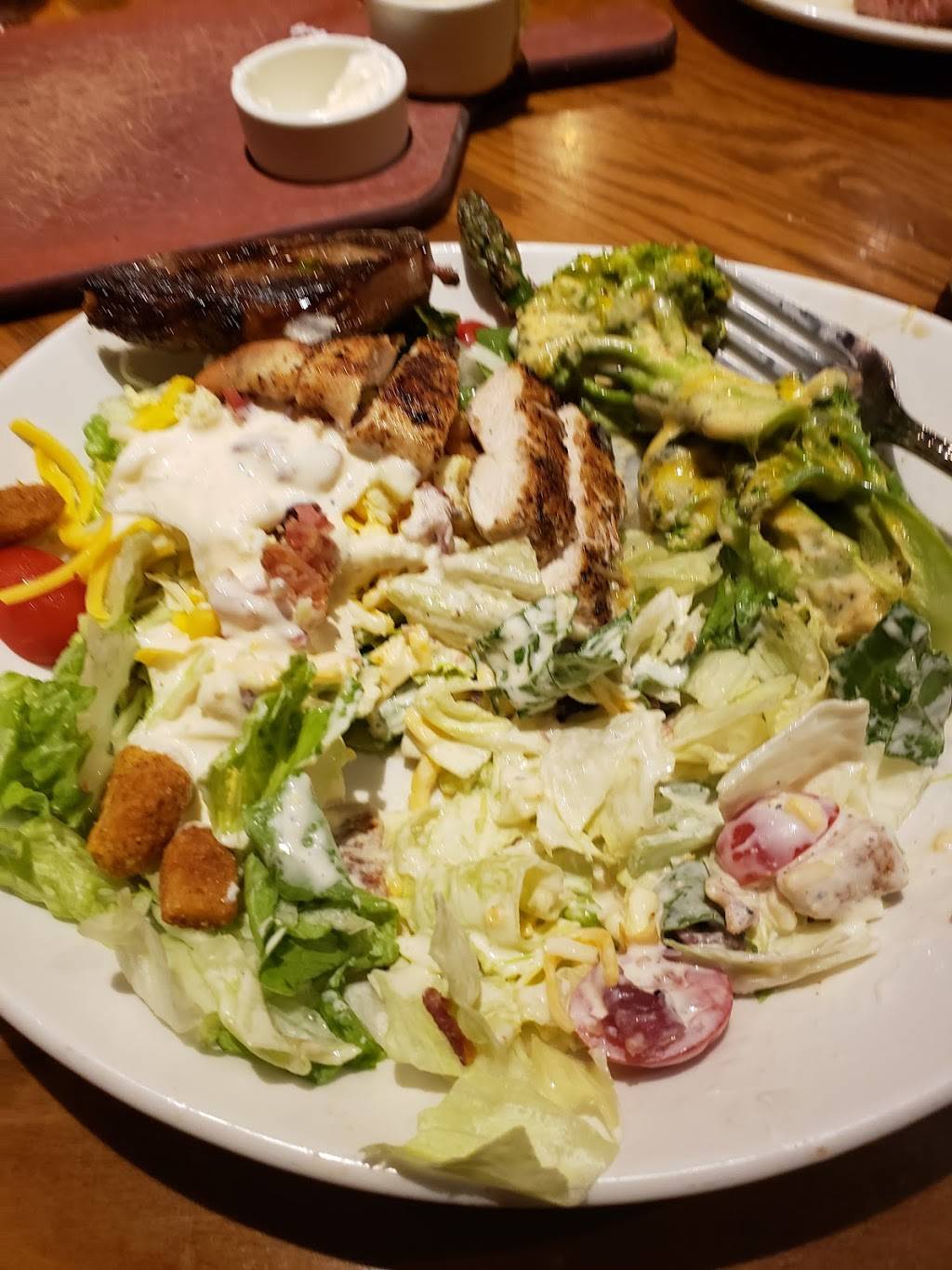 My experience was not the best we went on Saturday about 6:00 pm. The place was very busy. I had a blooming onion it was over fried and greasy. I had grilled chicken and there were red spots when served the waiter took it back and the were suppose to put back on grill but I think it was microwaved. My potatoe, broccoli, salad and cheese cake was good. My husband had the chicken and tortilla soup didn't like the flavor but his steak and shrimp was great. The service was not the best we had a waiter that started 3 days ago, I know this because he told people. I think he had too many tables because all our food was delivered by kitchen help. He could not remember small requests. I ask for paper napkins and he brought the bar napkins, and I requested drink refill 3 times.