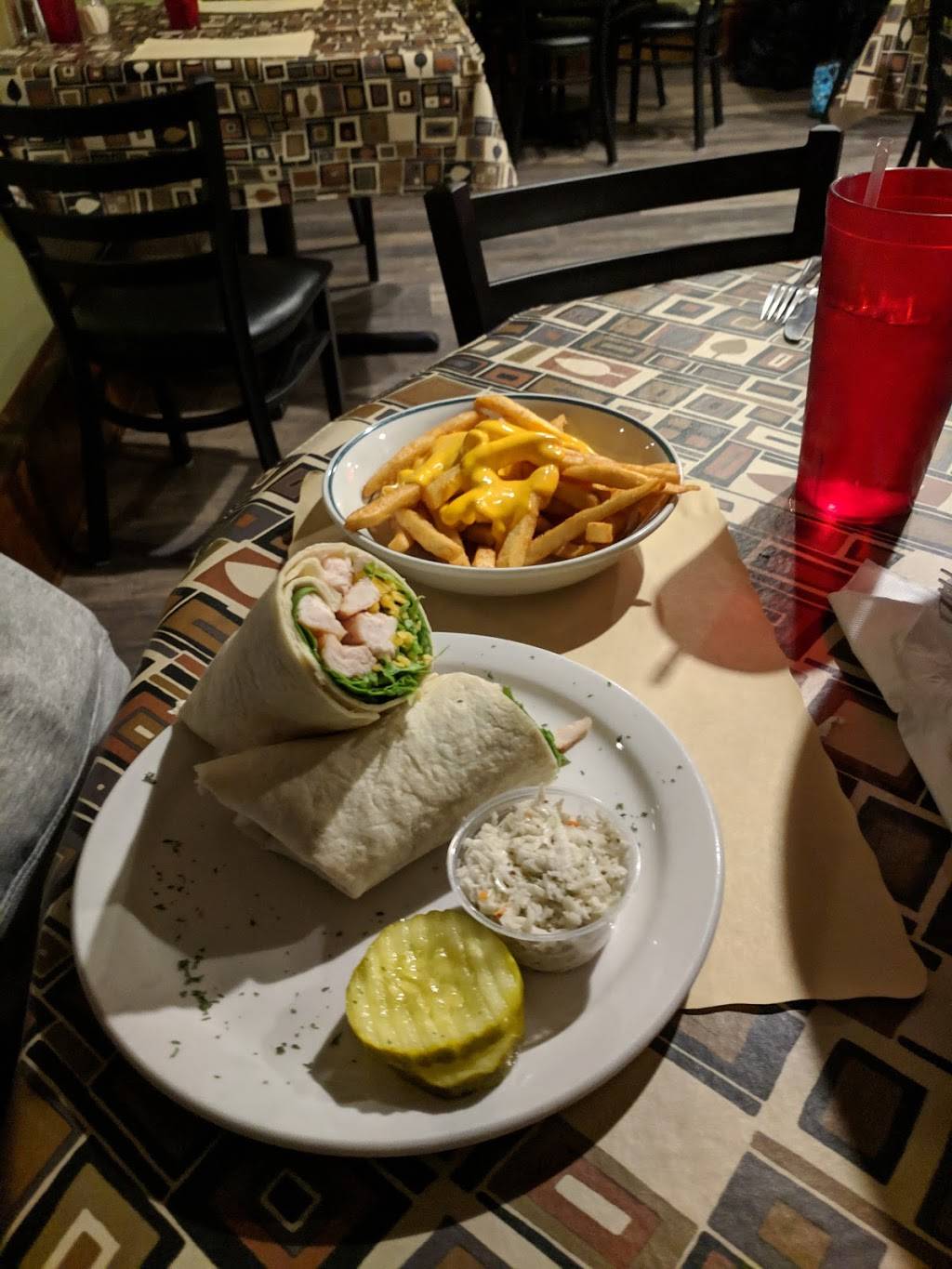 Stopped here for lunch while in town visiting family. Nice little reasturant, clean and welcoming. Owner/waitress was very friendly. Service was fast and professional. The food we got, grilled chicken wrap and pizza were very good. The pizza had an abundance of toppings and a good crust. Would definitely recommend this place.