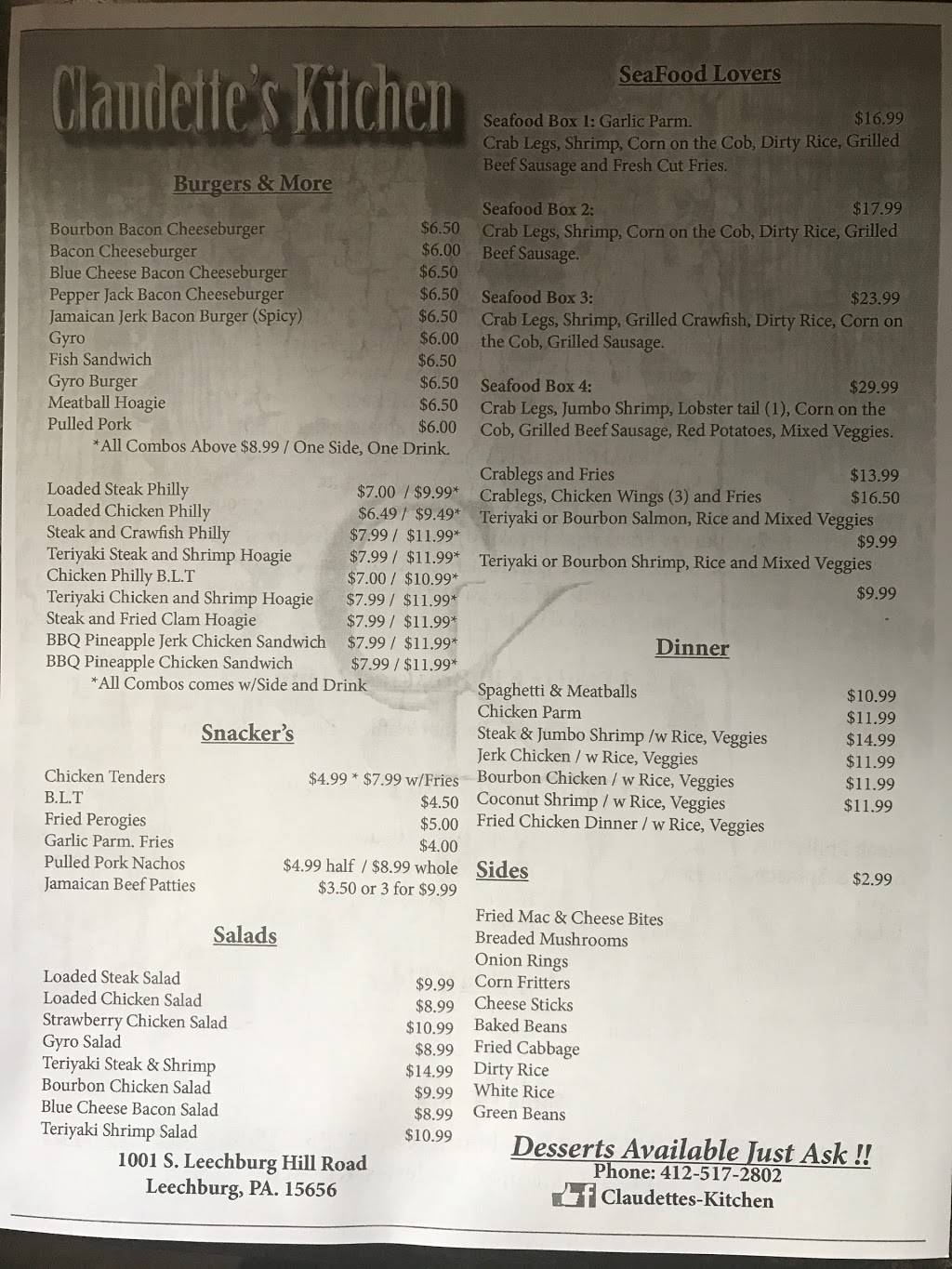 Come in for some homemade food. We are located at 1001 S. Leechburg Hill Rd. We are open from 10am to 8pm. Hope to see you soon.