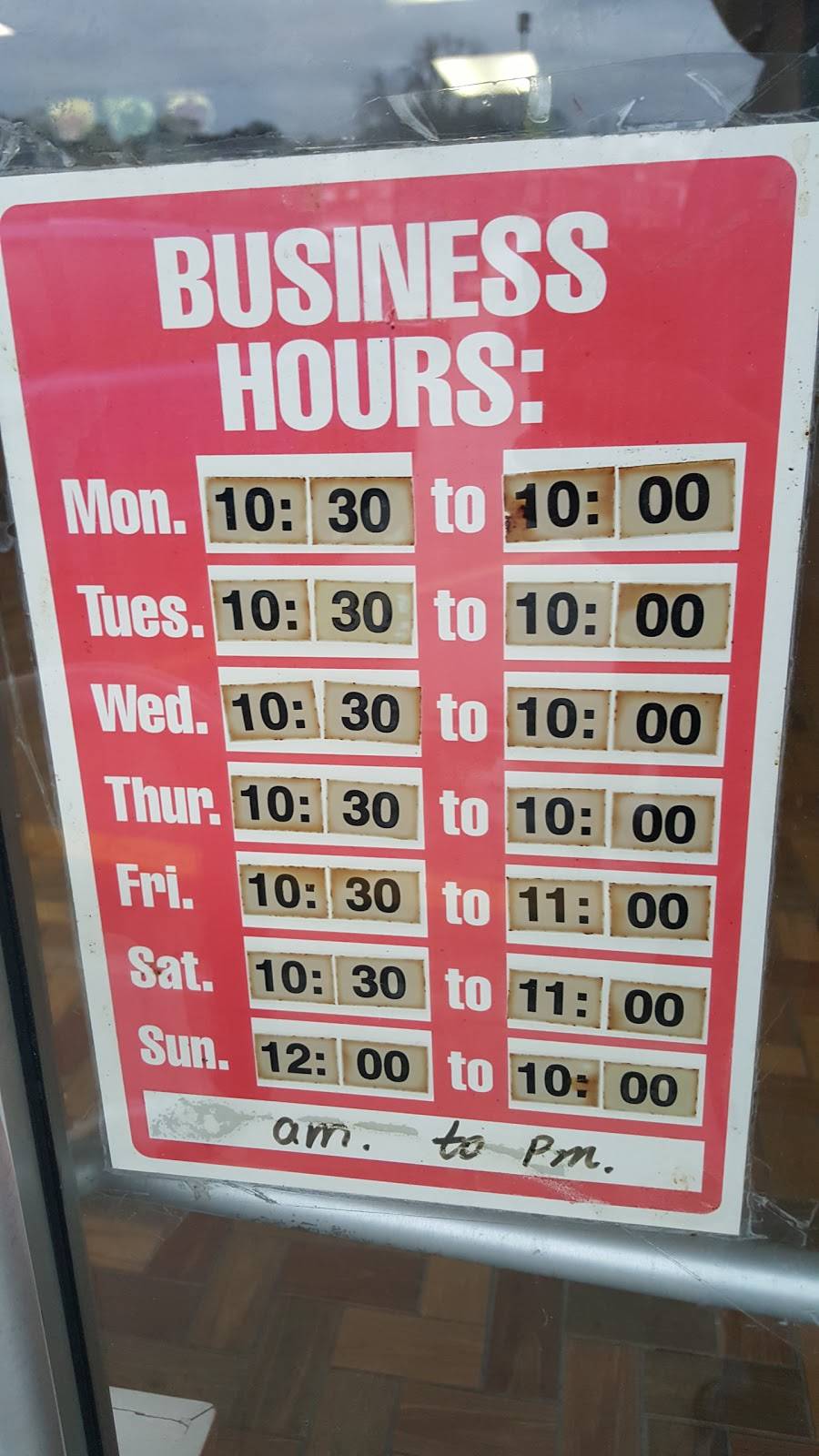 | Monday: | 10:30 AM – 10:00 PM |