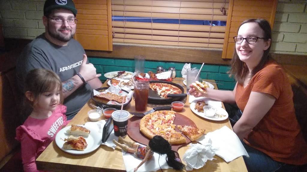 Was visiting family and went to Pizza Hut for dinner. We dined in and had great customer service and the restaurant was clean. The food came out hot and the breadsticks were good. Our waitress checked on us several times and did awesome! Will definitely be back.