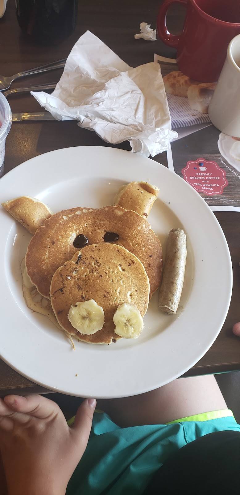 Excellent service! Bev greeted us with a warm welcome, and was very interactive with our kiddos throughout our entire dining experience. Our waitress, Kim, was prompt and efficient. Another waitress refilled our coffee, great teamwork. We will definitly be back more often. Thank you to everyone!