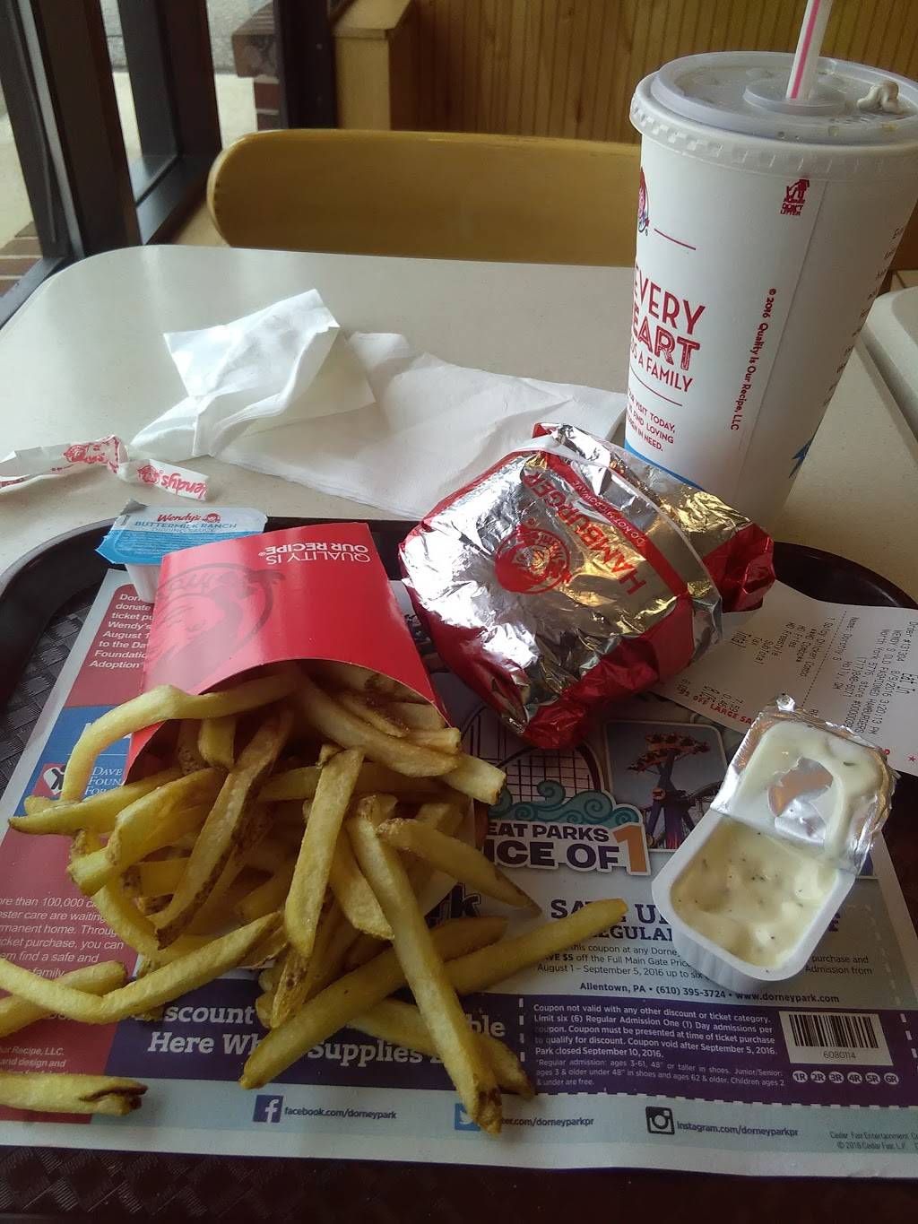 Loved the food at wendy's fast,friendly and really loved the jr cheeseburger deluxe