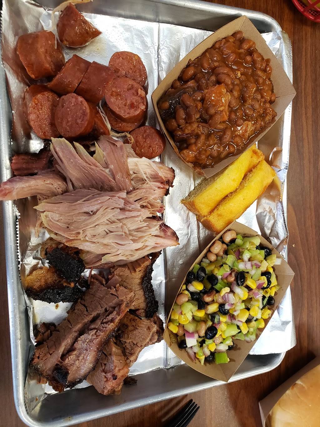 Awesome BBQ! Tiny hole in the wall place has great BBQ. Excellent serving size, great choices. Brisket chili was fantastic, Cole slaw was as well. Had brisket, pulled pork and pulled chicken, all were delicious. Brisket was my favorite. Service was fast and friendly.