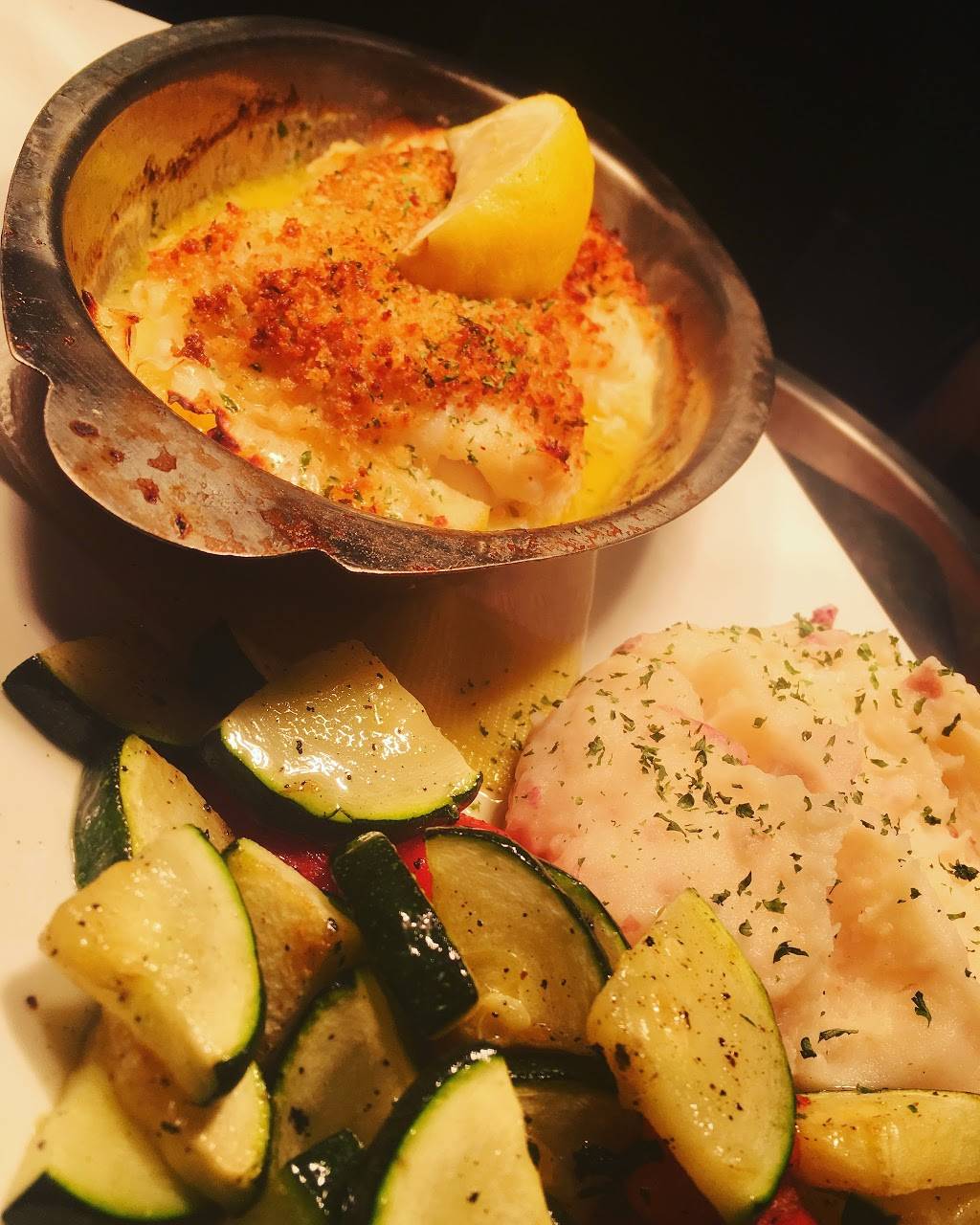 Little hole in the wall place. Bar and restaurant. Service was friendly and fast. Food was also served quickly. Very plentiful. My husband and I both took at least half of our order home.