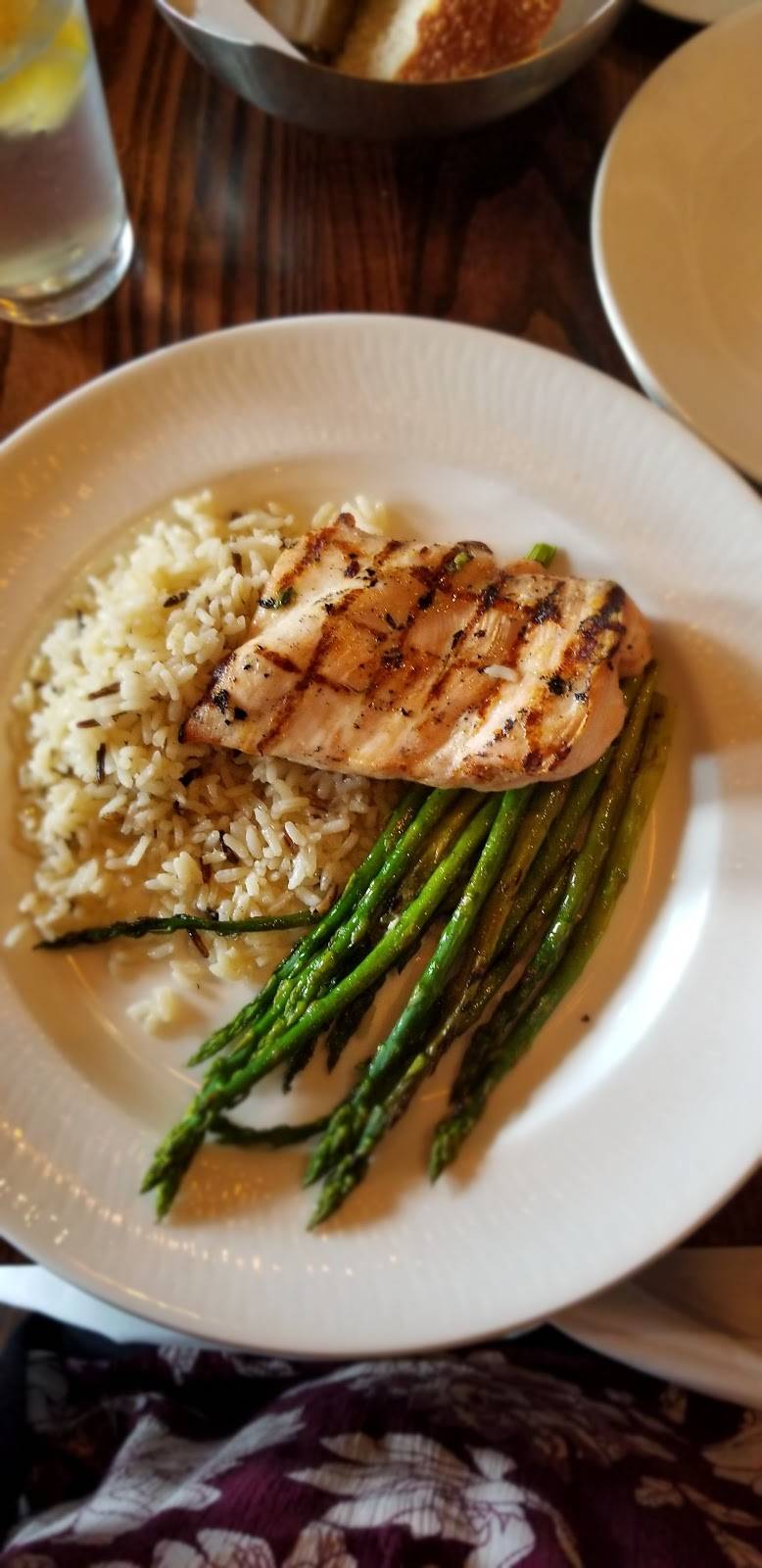 Rating 3 stars only because of the service- the food was 5 stars. Burger was very well cooked, as were the scallops and pizza. The salads were fresh and chowder delicious! However we had to wait a very long time between appetizers and entrees. We requested bread and received it 20 minutes later, after soups and salads were served. The waitress spilled wine on my Mom while refilling her glass without an apology. Despite all of this, I would probably go back because the food and ambiance are nice, just wish service was better.