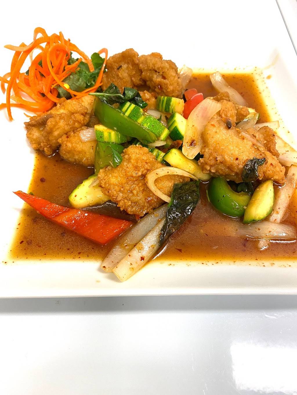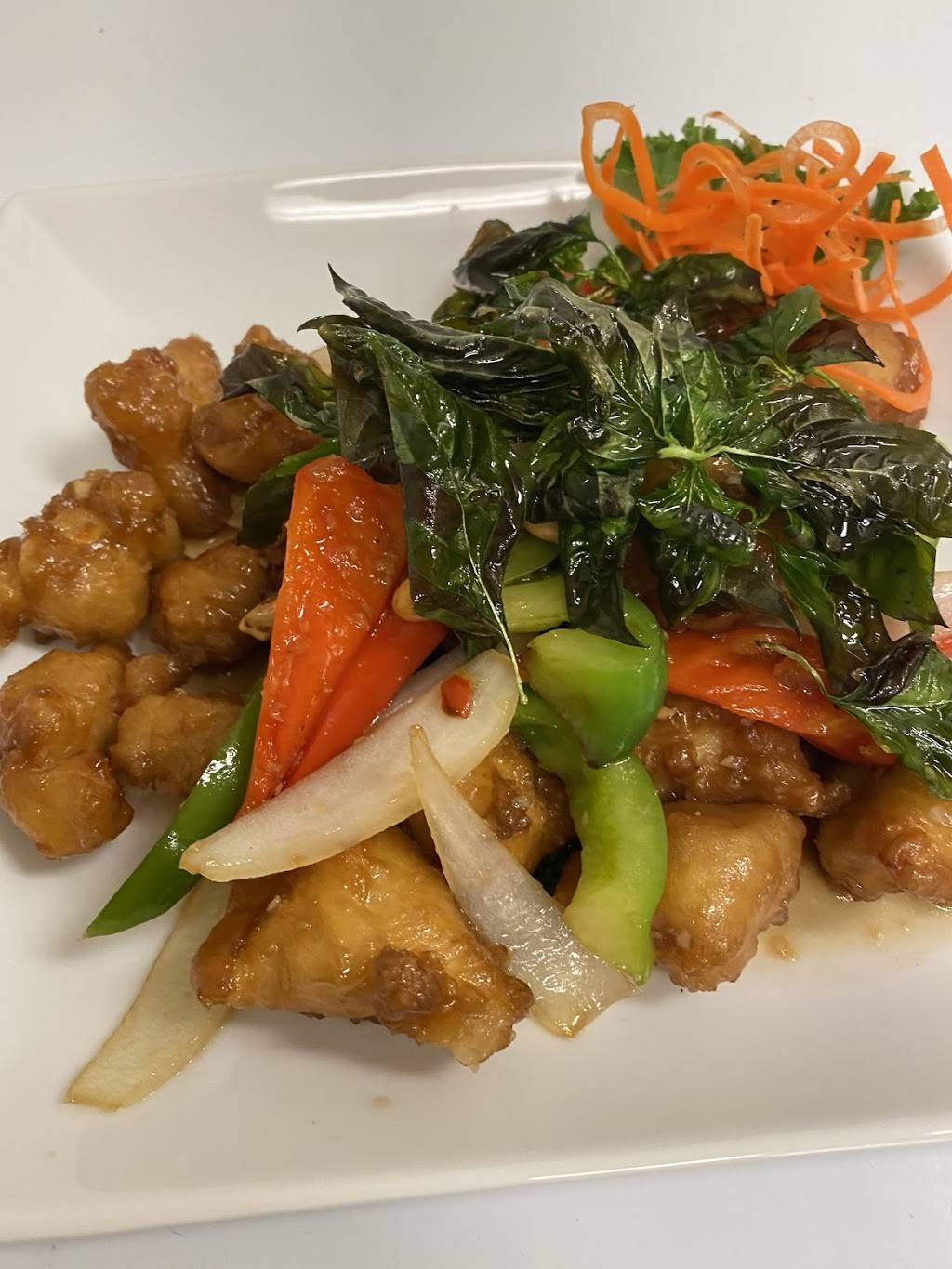I got tofu pad Thai. My boyfriend got orange chicken. We got three appetizers: calamari, fried tofu, and dumplings. Everything we tried was good! It’s one of the best pad Thais I’ve ever had. The tofu was perfect. I’ll be returning frequently!