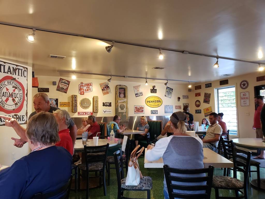 Wonderful retro style diner with automotive industry decor. The food is wonderful! Everyone in my dinning party had the country fried steak with white gravy. For a side I had the cabbage and bacon hash which was GREAT! The desserts are also wonderful