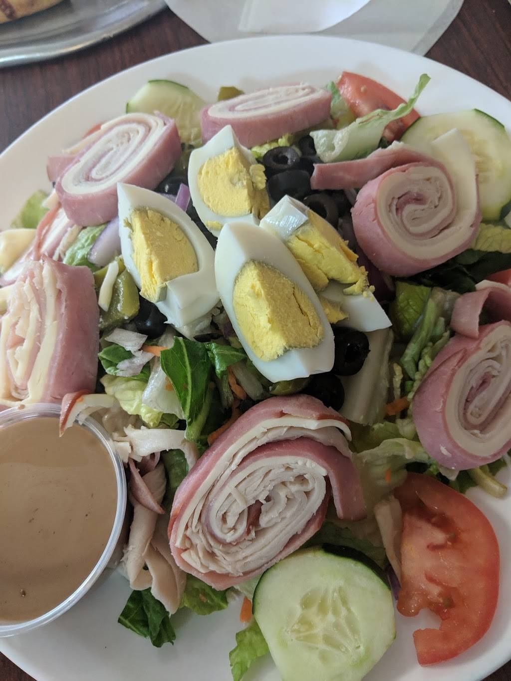 I saw the ratings posted by others and thought I'd give it a try. It's a simple interior with a nice menu from appetizers to desserts. I was honestly surprised by the excellent hand tossed and old world style that had a perfect crust, the cheese was high quality and stretched out as I ate. In a different location, you wouldn't be able to get a table! It's that good! My only suggestion is to use Google maps to find it. The signs didn't draw my attention. Not sure if I would have found it otherwise. I would have missed a great meal! It's worth driving out to visit. The 18 inch is huge and loaded with toppings. Will definitely be back on my next trip.