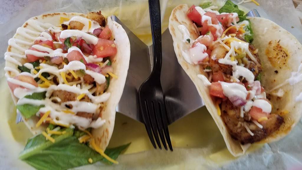 No inside seating. Fans kept us pretty cool on a hot day. Had chicken tenders with mild sauce. Turns out it wasn't mild BBQ, it was mild buffalo sauce. It was SO spicy!!! People with me said fish tacos and chicken quesadilla were wonderful.