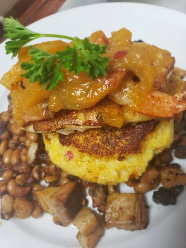 Food was very good. I had the grouper tacos. They certainly were filling, however had I known they were fried grouper bites I wouldn't have ordered them. The chicken and peach cassade got rave reviews as the seafood sliders comprised of lobster, crab and shrimp cakes. Careful, if ya don't like spicy sauses make sure you order them on the side. There's a new salad its huge with fresh crumbled bacon, egg and all the usual ingredients. The view is spectacular!! The lunch prices were reasonable. The place is new so pick your patience with your server. Ours was real new so..,slow.