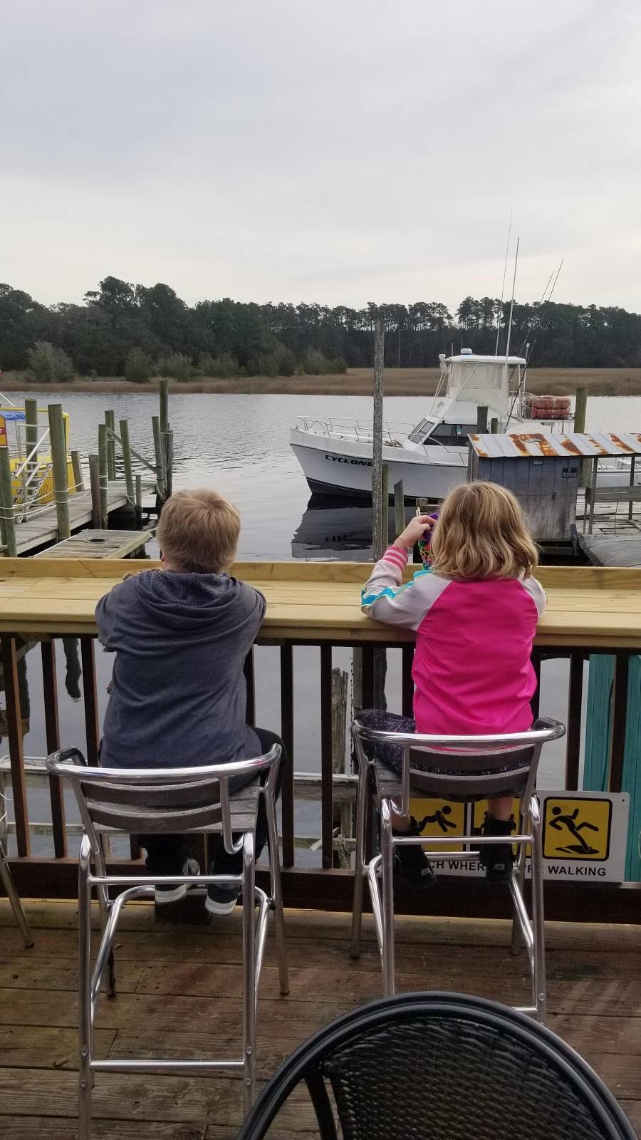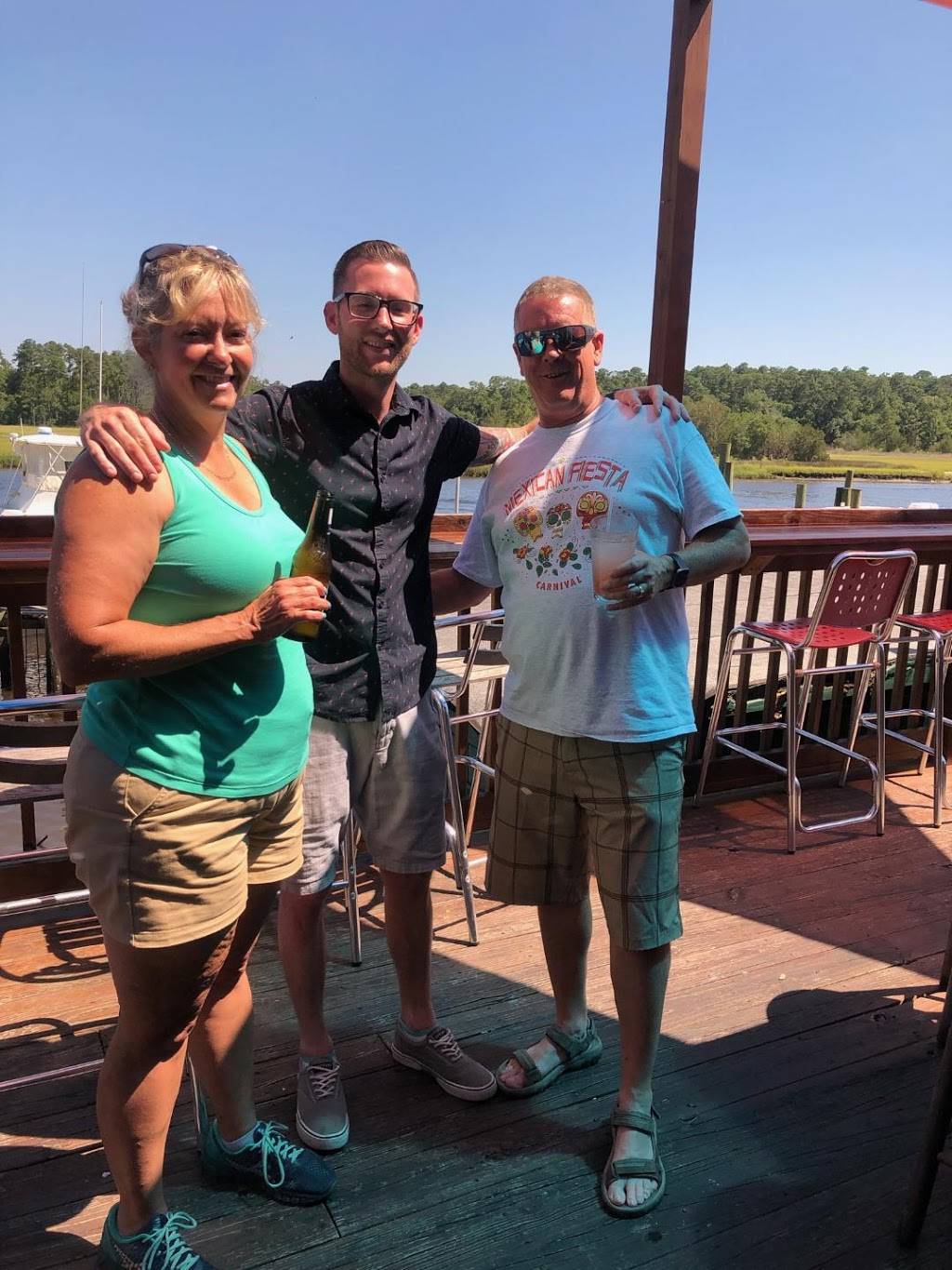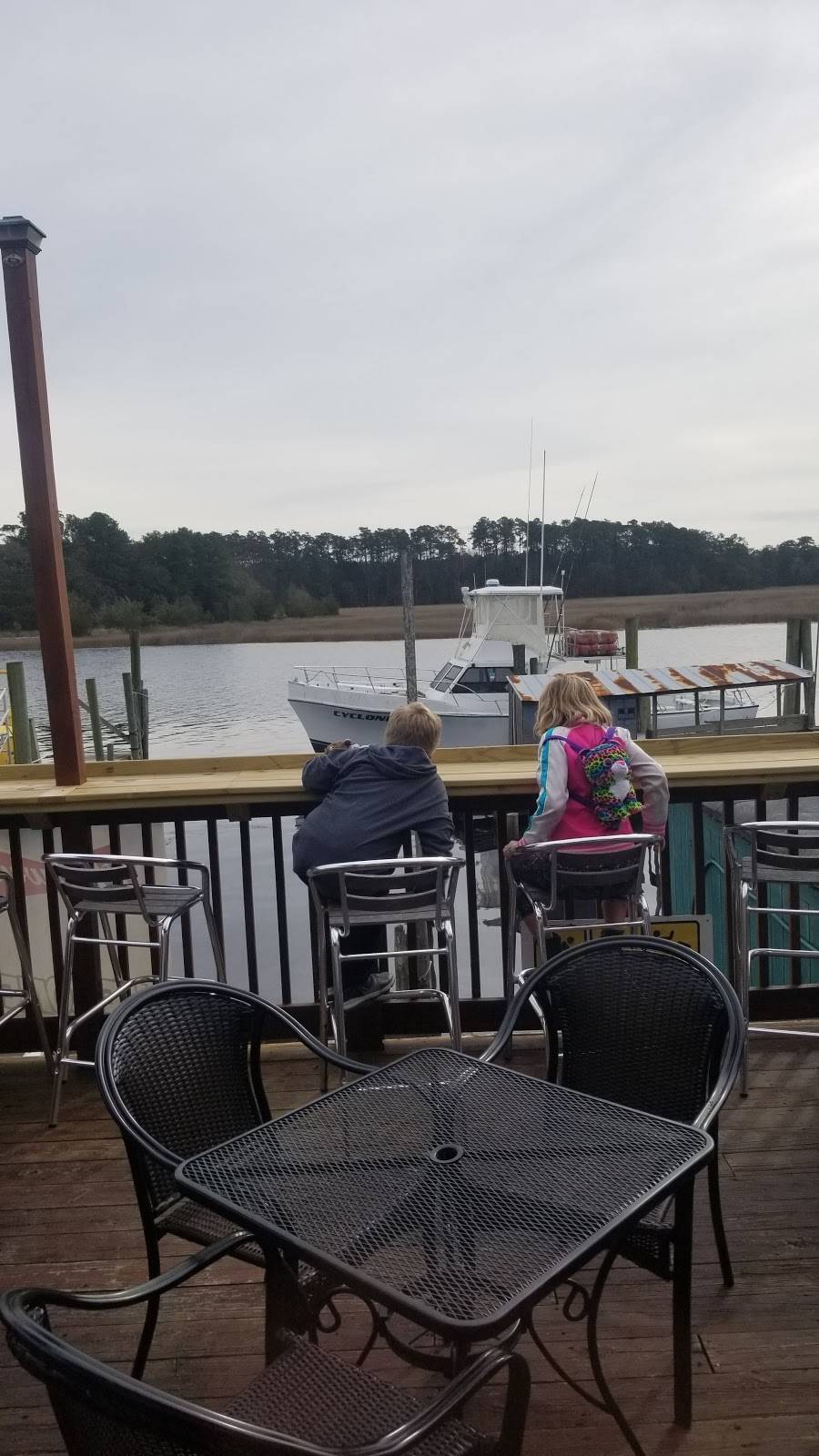 Don't miss the calamari with pepper chutney -- enjoyed the waterway with the lazy boat traffic and birds galore. Super friendly for dogs and peeps! A fun stop in Little River.